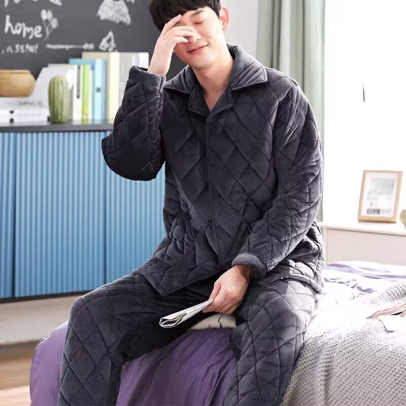 구금 시설 잠옷 겨울 두꺼운 따뜻한 죄수를위한 남성용 산호 양털 3 층 면화 세트