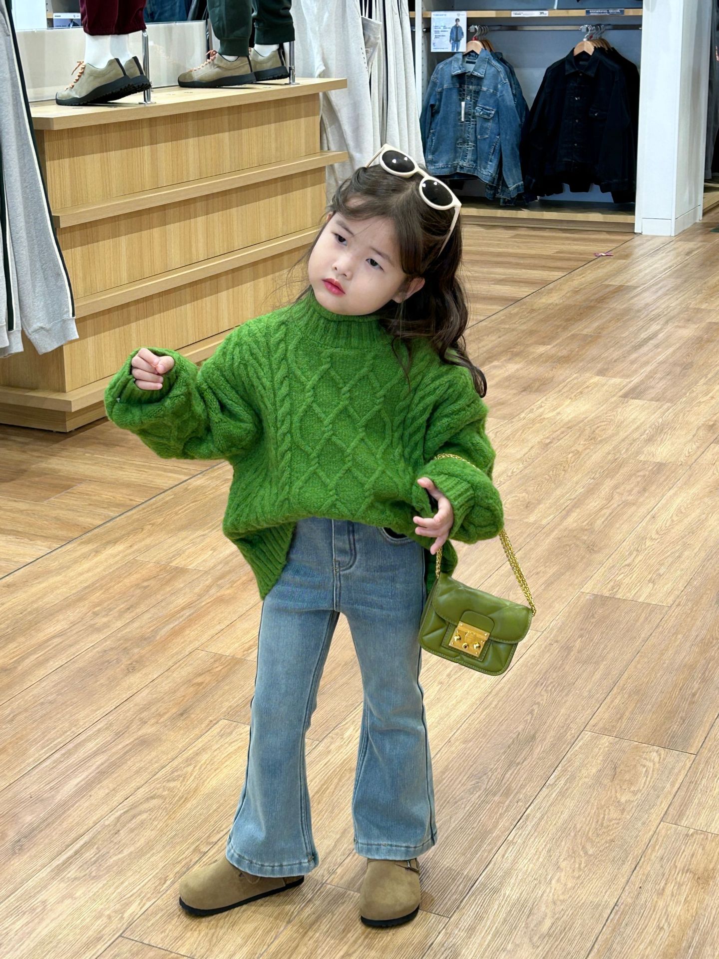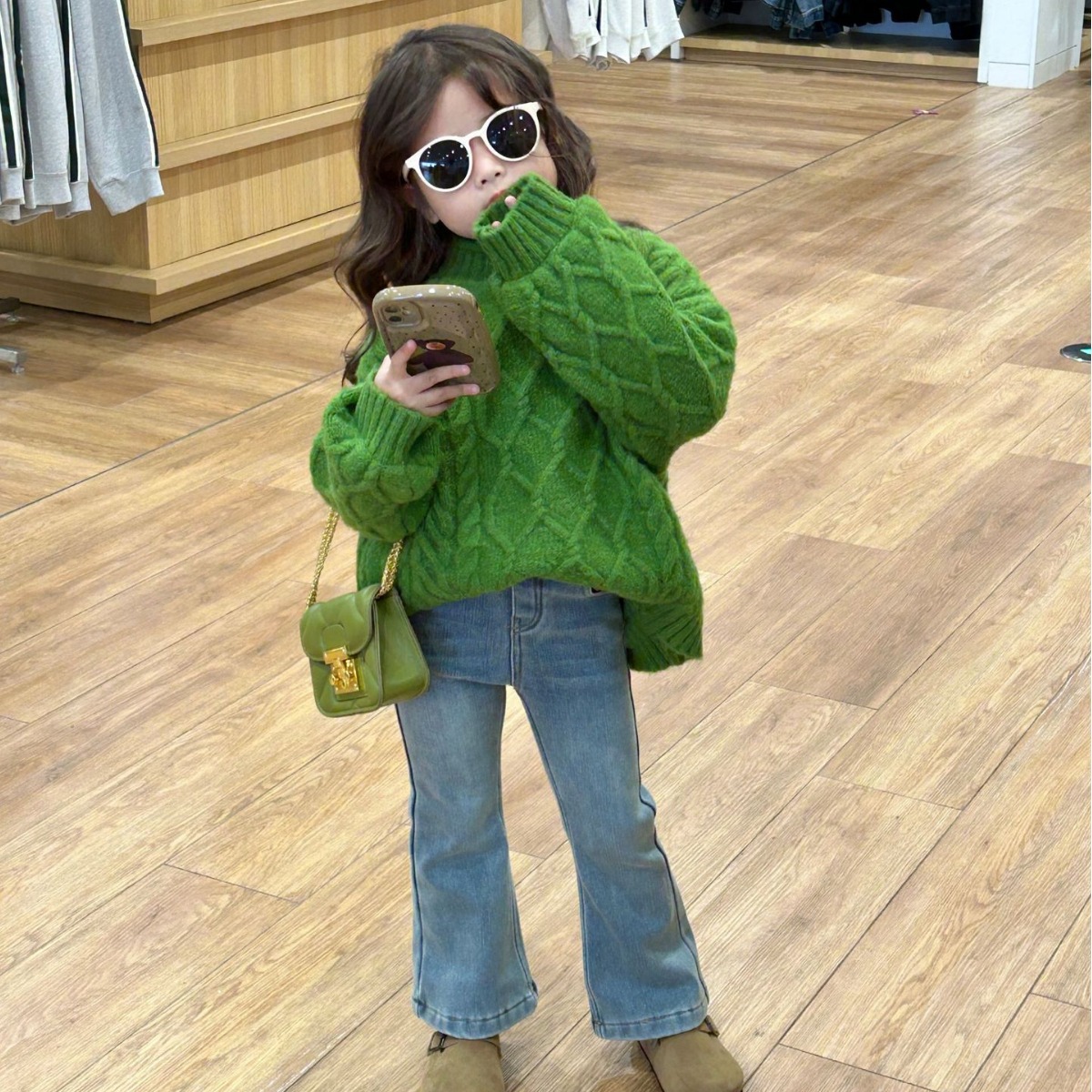 소녀 기모 청바지에 가을과 겨울 새 어린이 한국식 슬림형 마이크로 플레어 바지 중소 어린이를위한 트렌디 바지스토어 가기
