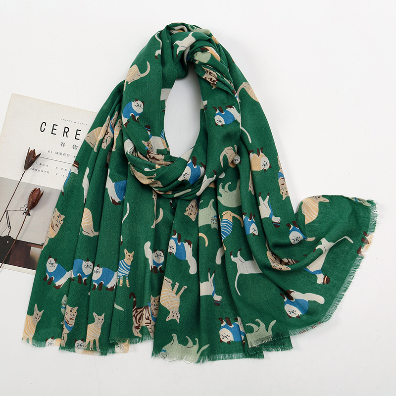 TikTok 폭발 고양이 강아지 인쇄 패턴 술 긴 수건 거리 유행 모든 경기 여성 스카프 선 스크린 목도리