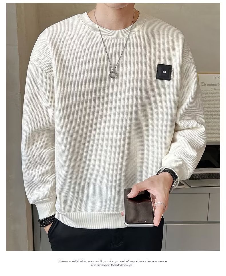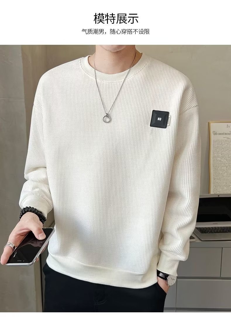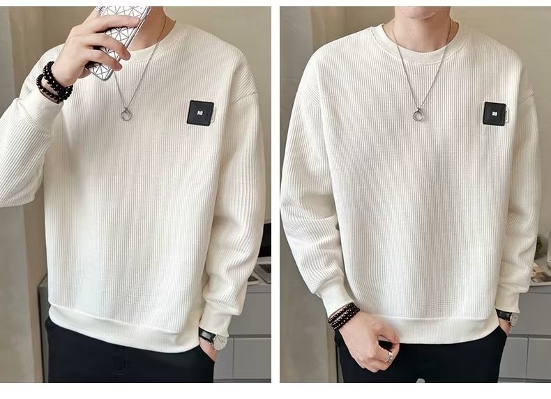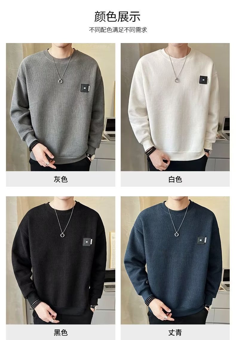 질감 패턴 스웨터 남자의 봄과 가을 단색 2023 가을 타이드 느슨한 승무원 목 캐주얼 남자의 가을 의류 머리카락의 세대스토어 가기