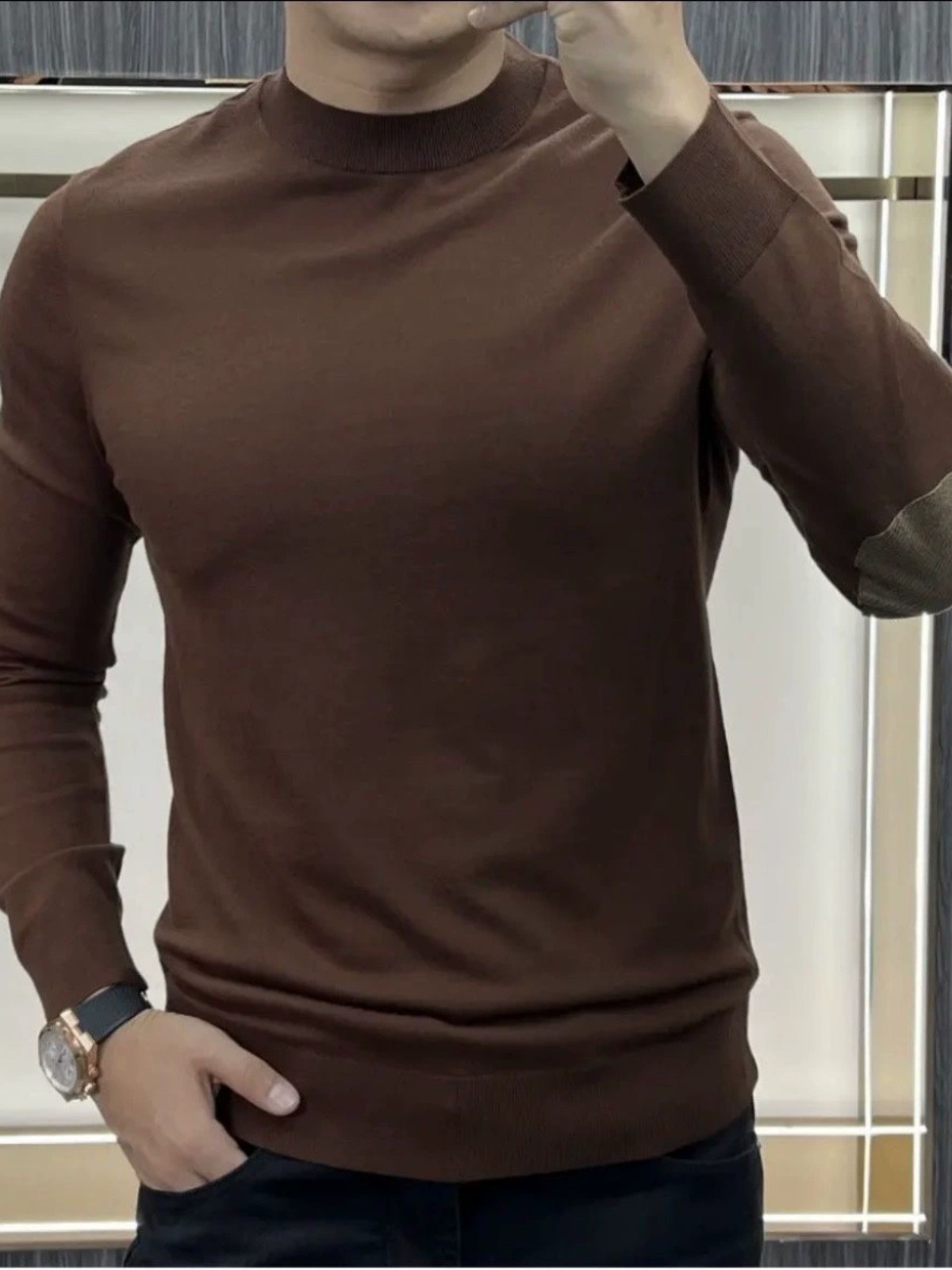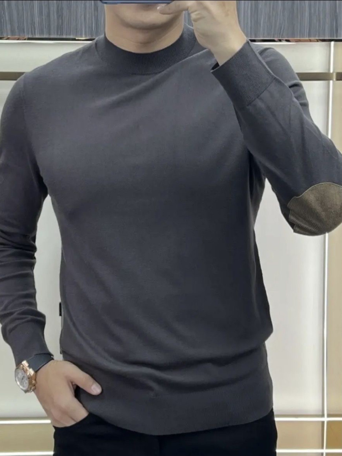 하프 터틀넥 터틀넥 스웨터 남자 긴소매 베이스 셔츠 탑 레트로 패치 스티칭 탄성 솔리드 컬러 스웨터 남성용