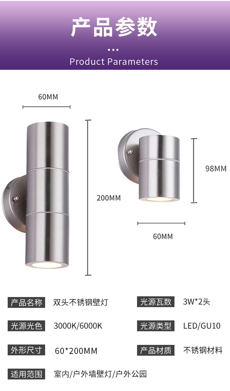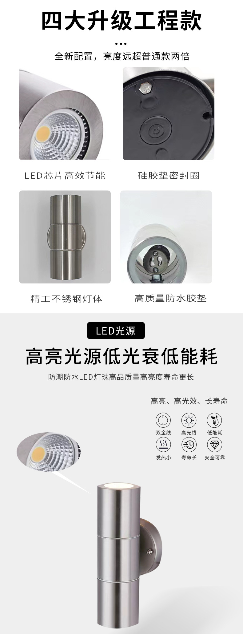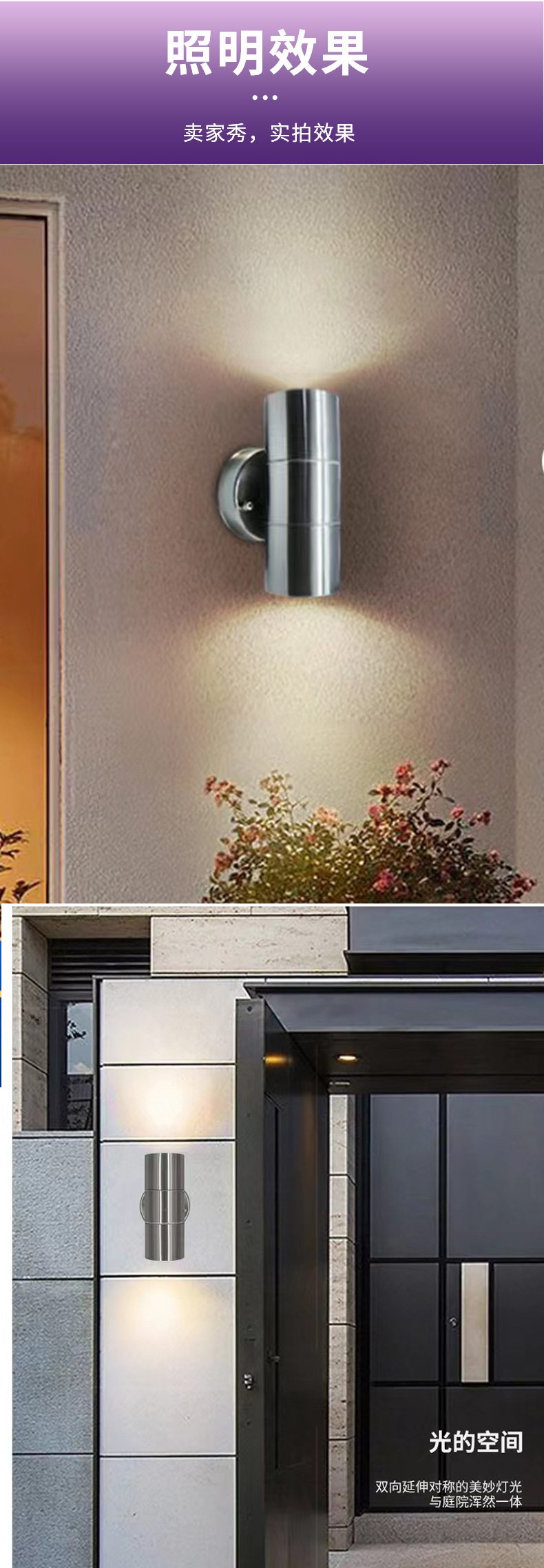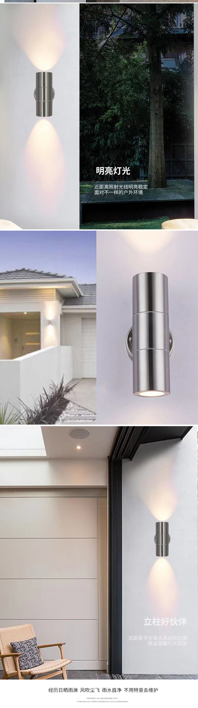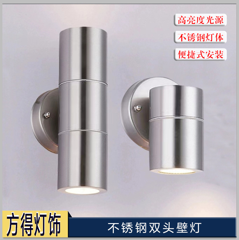 라운드 스테인레스 스틸 야외 벽 램프 싱글 및 더블 헤드 위아래로 스포트라이트 방수 정원 램프 GU10 램프 모자 라운드 크로스 해외스토어 가기