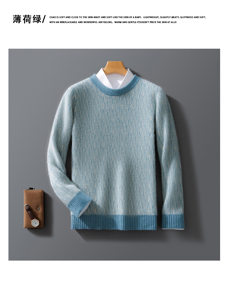 23 가을과 겨울 새로운 퓨어 울 스웨터 남성용 크루넥 느슨한 풀오버 울 니트웨어 비즈니스 두꺼운 베이스 스웨터스토어 가기