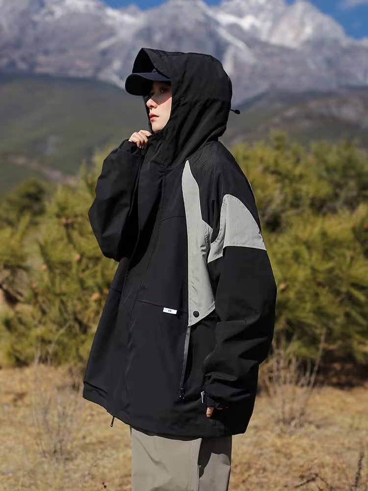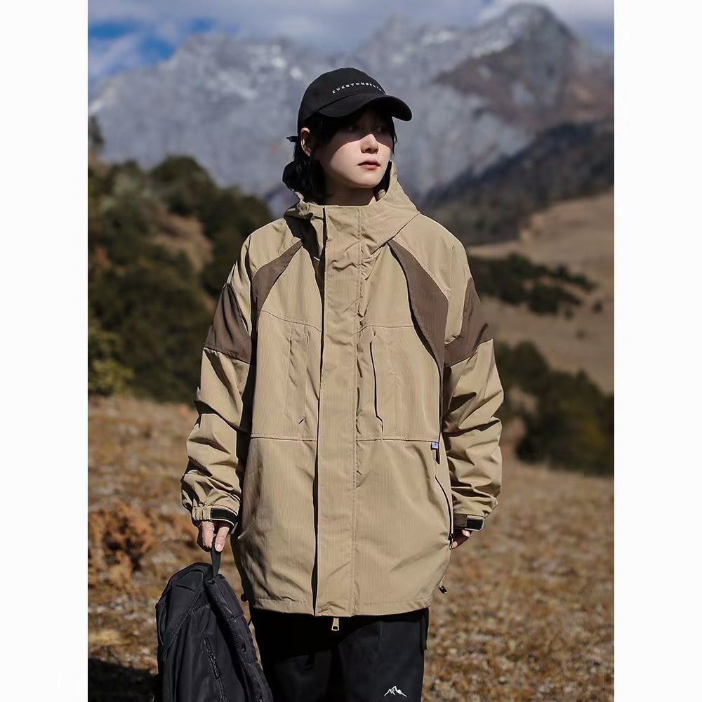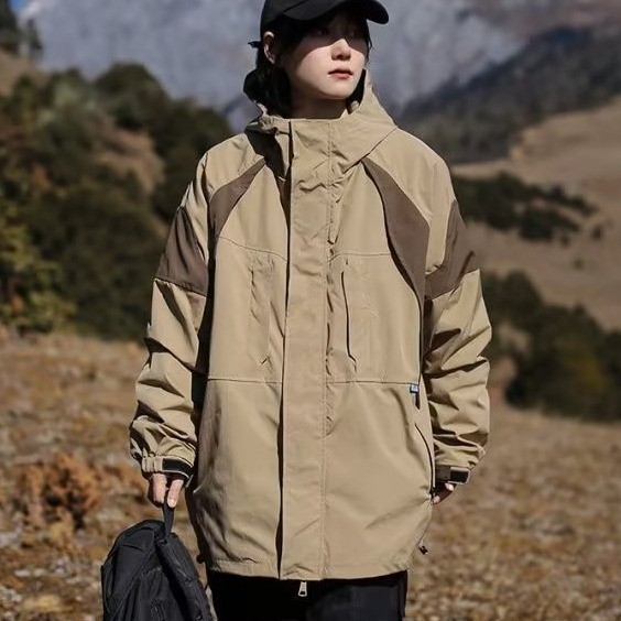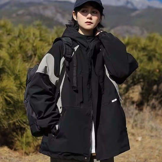 야외 기능성 후드 재킷 소녀의 가을과 겨울 일본식 트렌디 브랜드 캐주얼 느슨한 색상 대비 작업 재킷