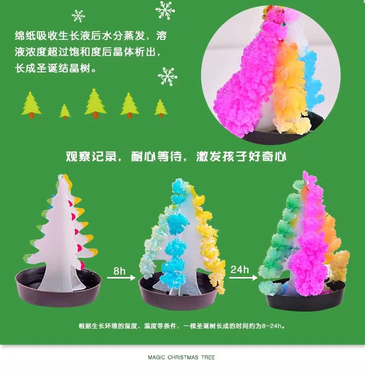 그리운 다채로운 크리스마스 트리가 꽃을 피울 것입니다 종이 나무 마술 급수 꽃 결정화 과학 실험 오프닝 선물