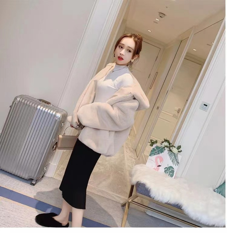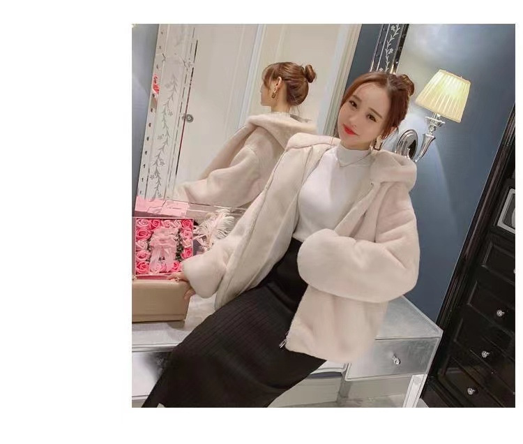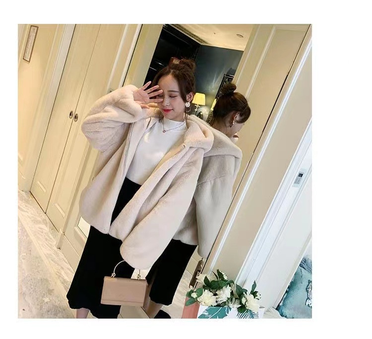 코트 여성용 양면 벨벳 2023 새로운 가을 겨울 코트 여성용 두꺼운 후드 플러시 벨벳 루즈한 쇼트 코트