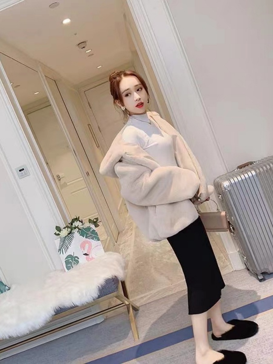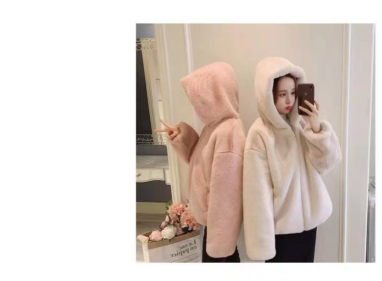 코트 여성용 양면 벨벳 2023 새로운 가을 겨울 코트 여성용 두꺼운 후드 플러시 벨벳 루즈한 쇼트 코트스토어 가기