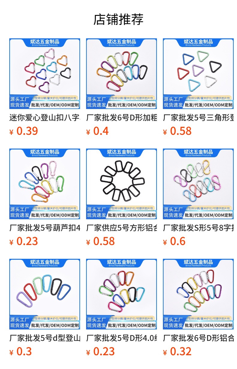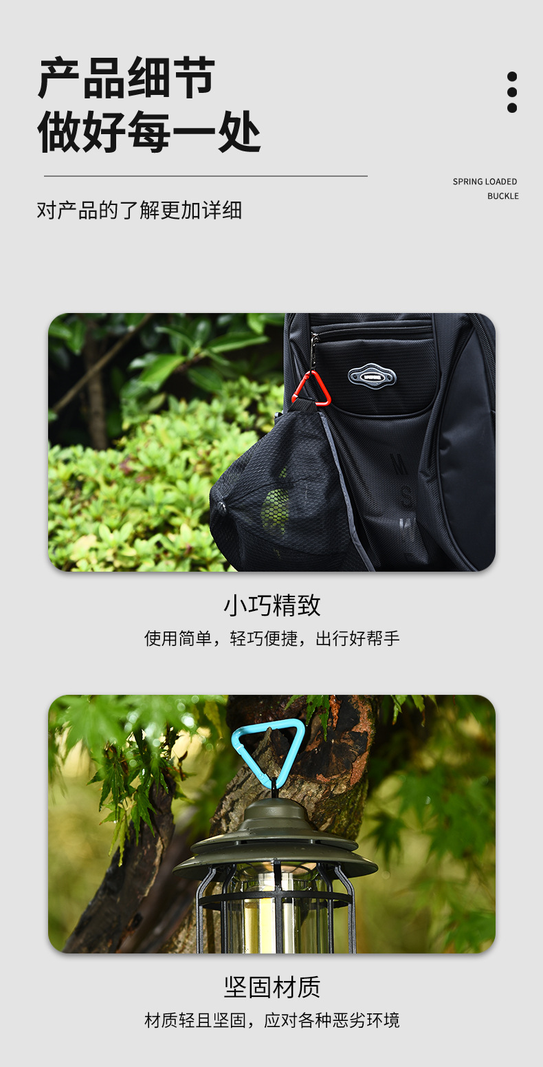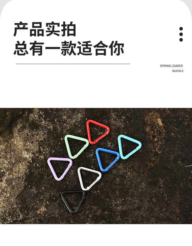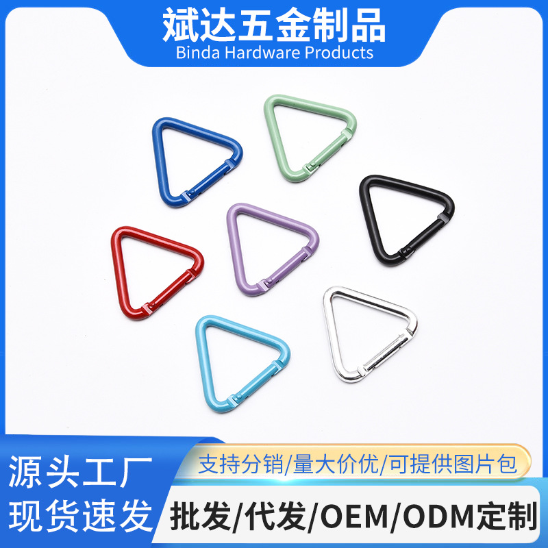 제조 업체 도매 5 호 삼각형 카라비너 다채로운 작은 배낭 걸이 버클 diy 아동 의류 야외 액세서리스토어 가기
