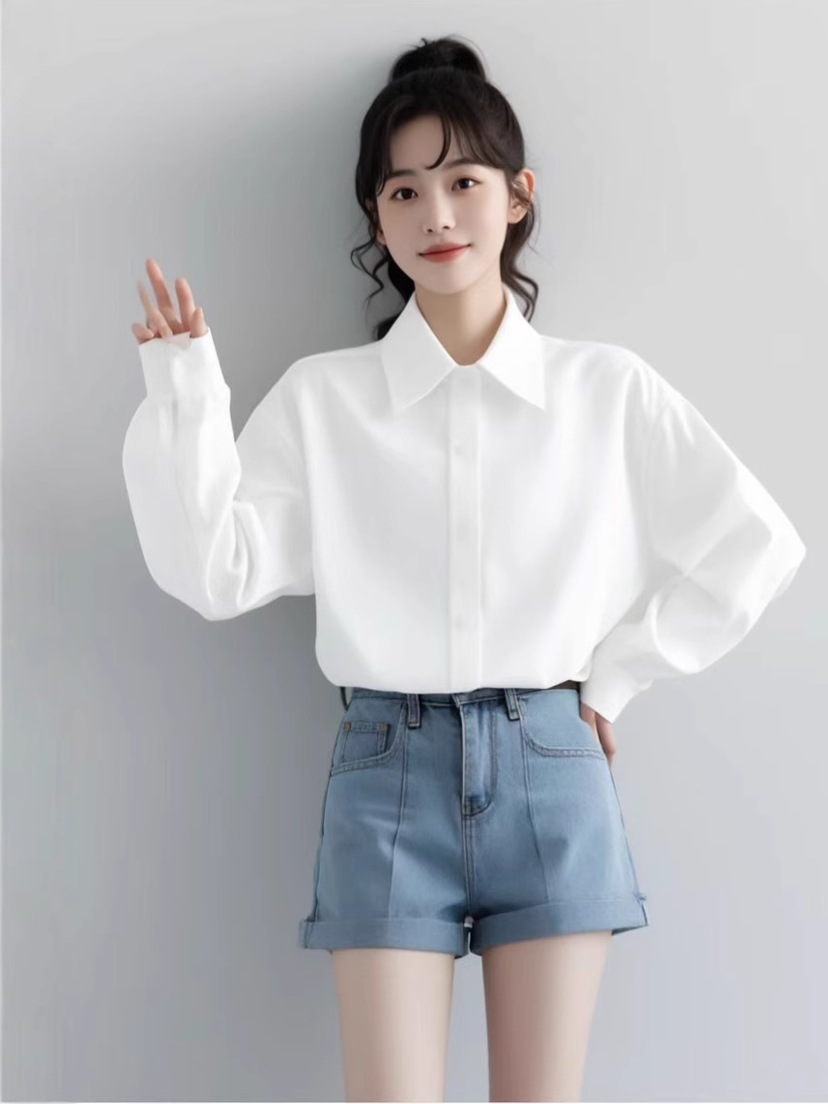 하이 엔드 라이트 럭셔리 탑 화이트 셔츠 여성용 새로운 모든 매치 내부 느슨한 긴 소매스토어 가기