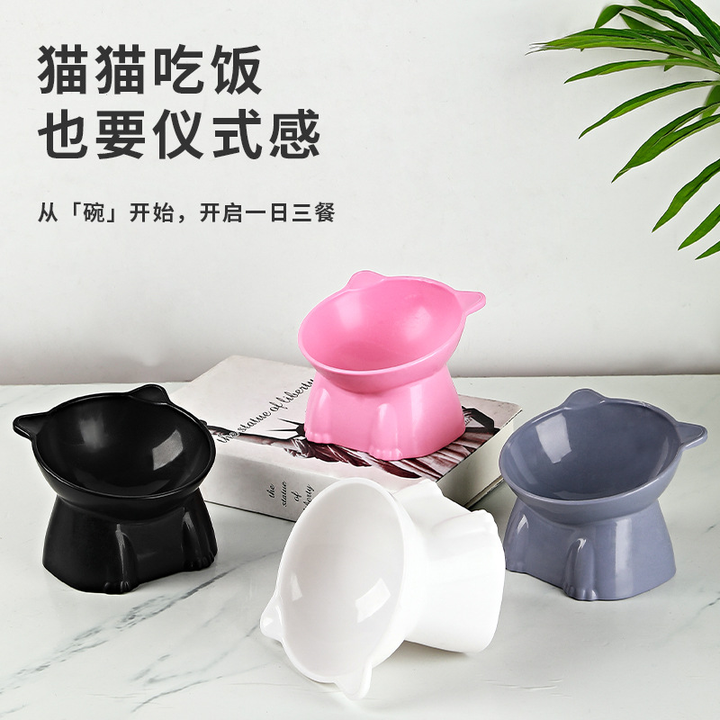 북유럽 스타일 틸트 높은 다리 플라스틱 고양이 그릇 만화 목 보호 안티 노크 고양이 개 그릇 애완 동물 식기 공장 아울렛