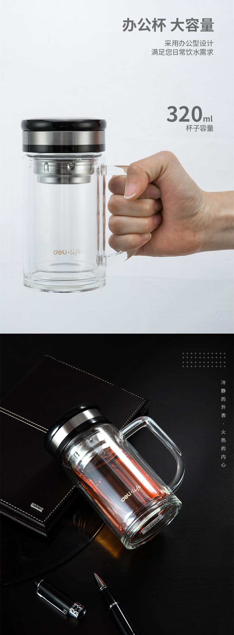 델리 8989 유리 높은 붕규산 유리 이중층 절연 찻잔 필터 차 사업 사무실 유리 찻잔스토어 가기