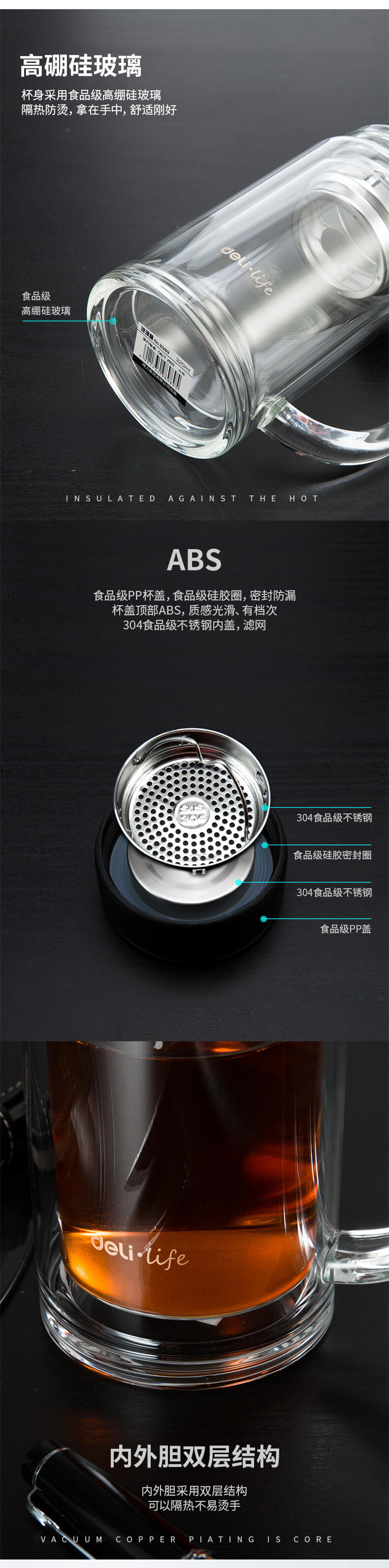 델리 8989 유리 높은 붕규산 유리 이중층 절연 찻잔 필터 차 사업 사무실 유리 찻잔