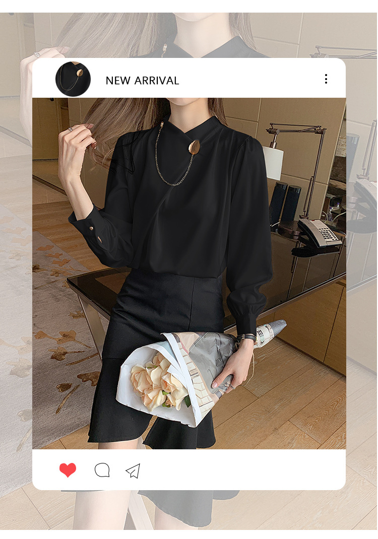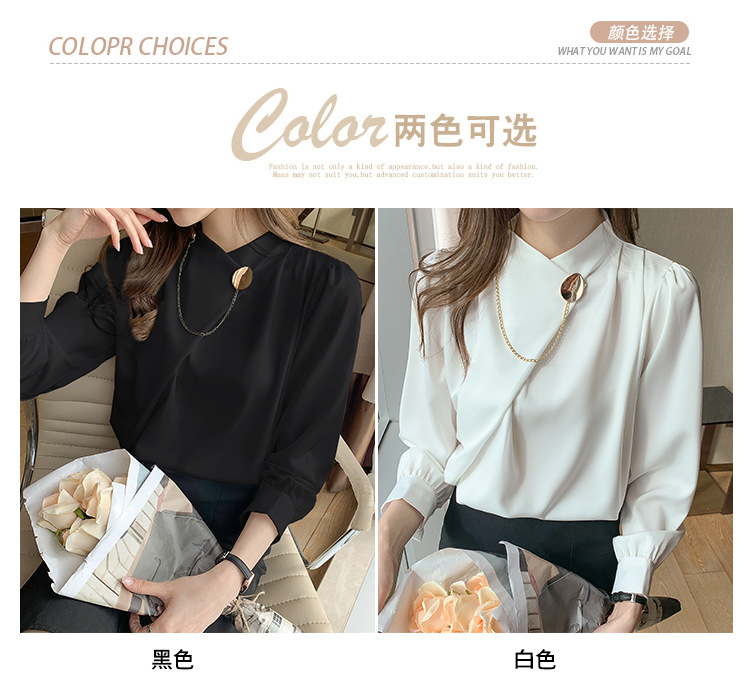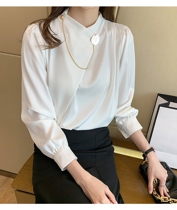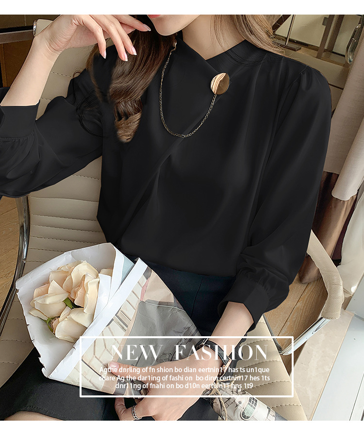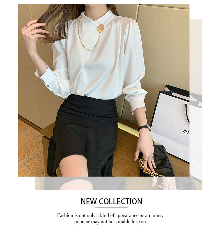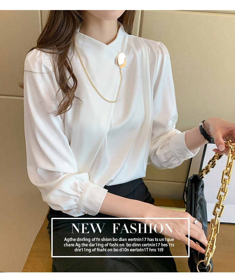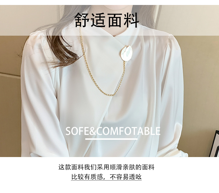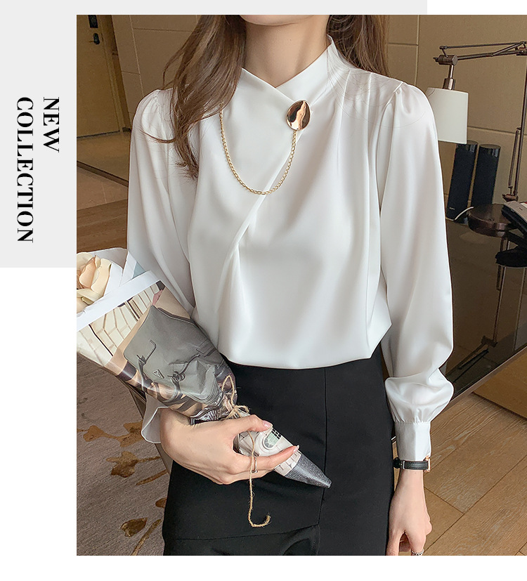 셔츠 여성 디자인 2024 가을 새틴 웨스턴 스타일 라이트 성숙한 패션 전문 스타일 셔츠 퍼프 소매 쉬폰 셔츠스토어 가기