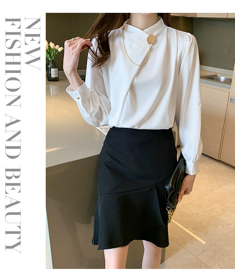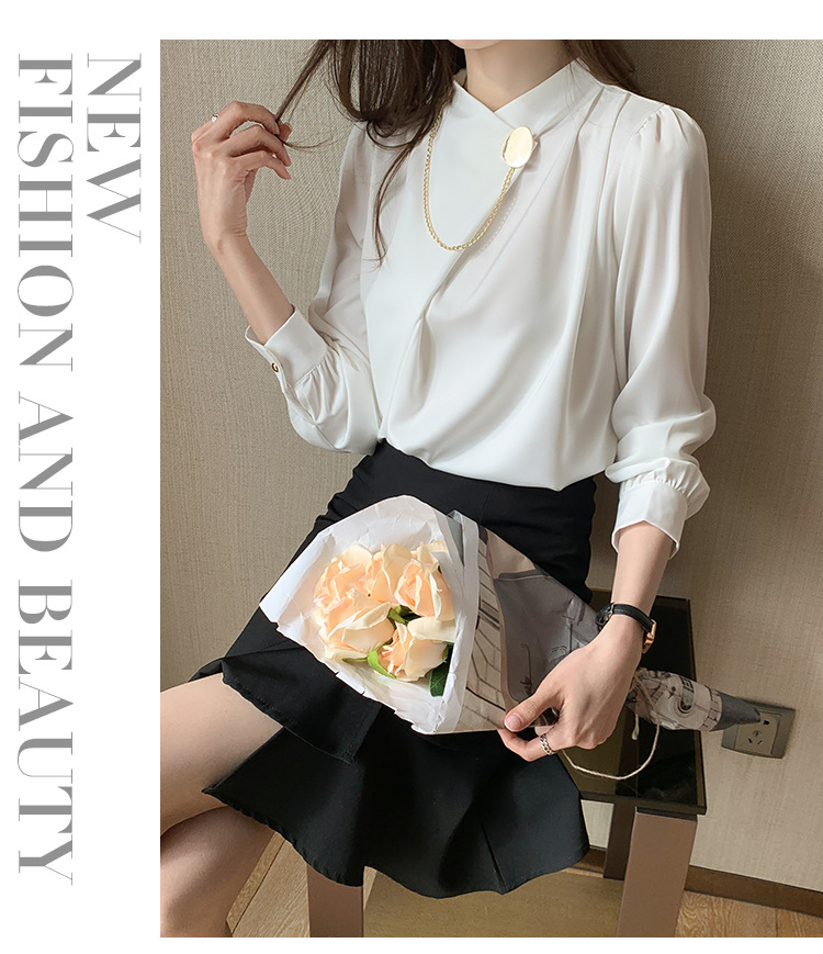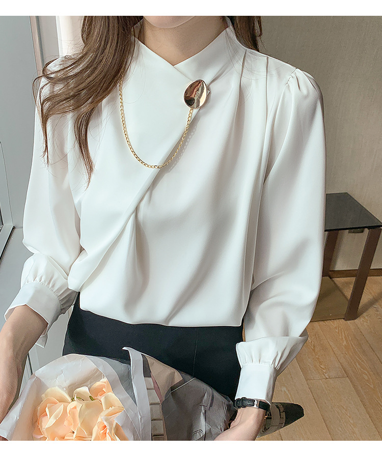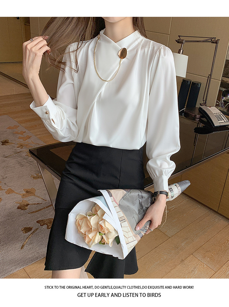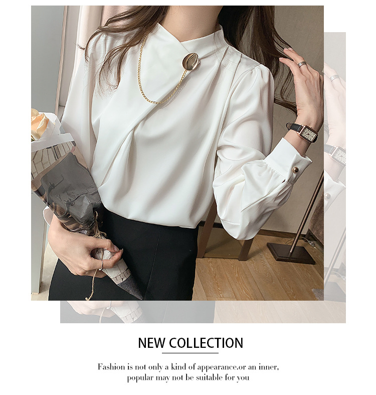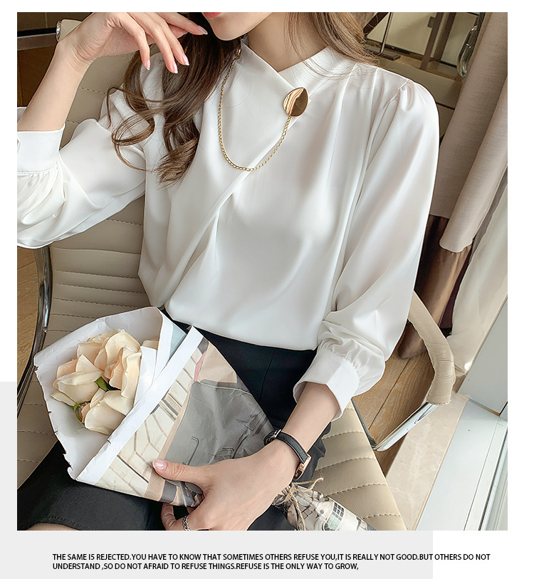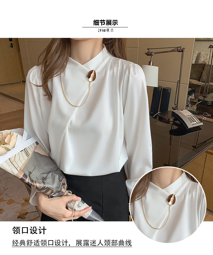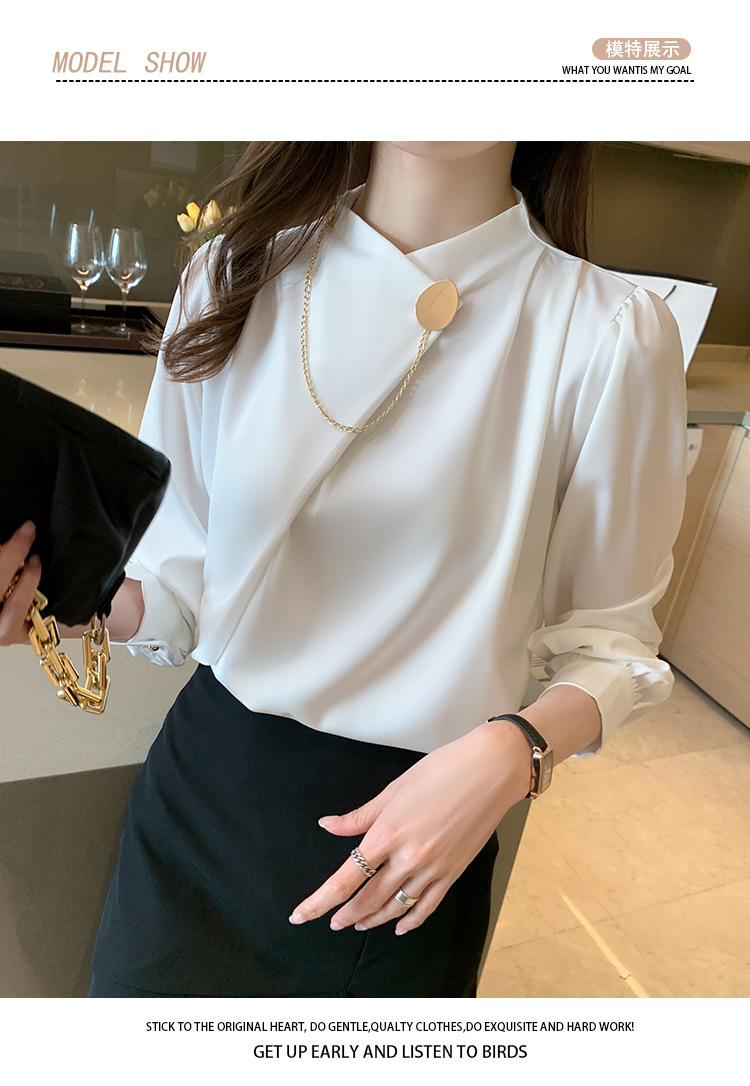 셔츠 여성 디자인 2024 가을 새틴 웨스턴 스타일 라이트 성숙한 패션 전문 스타일 셔츠 퍼프 소매 쉬폰 셔츠스토어 가기