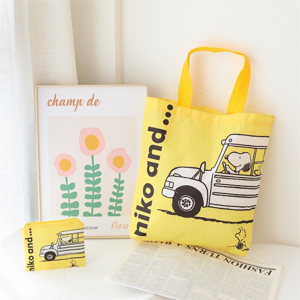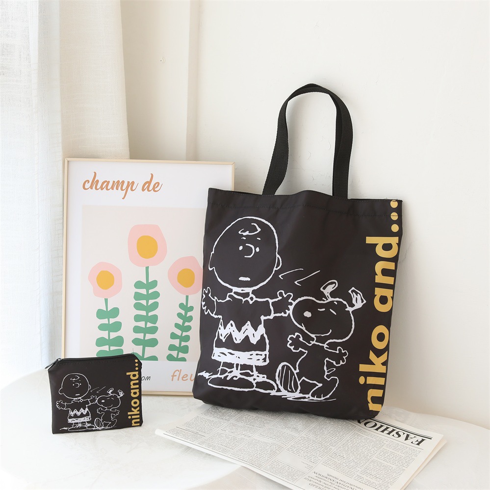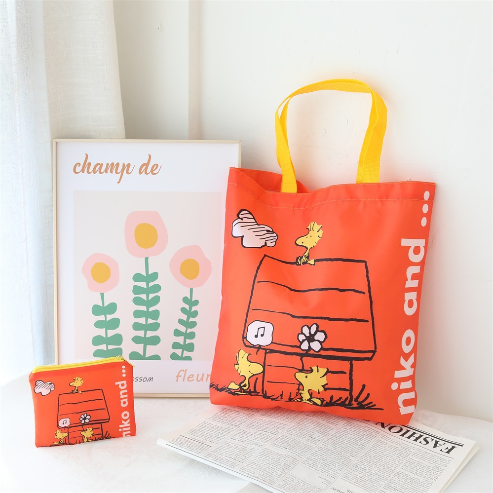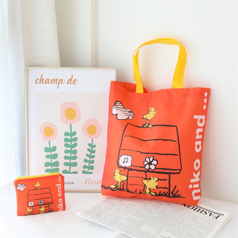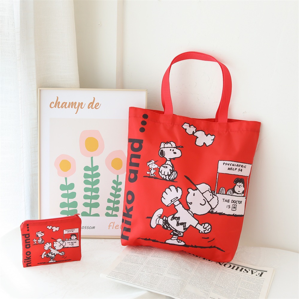 만화 패브릭 캐주얼 대용량 슈퍼마켓 쇼핑백 접이식 환경 친화적 인 핸드백 스누피 어머니와 어머니 보관 가방