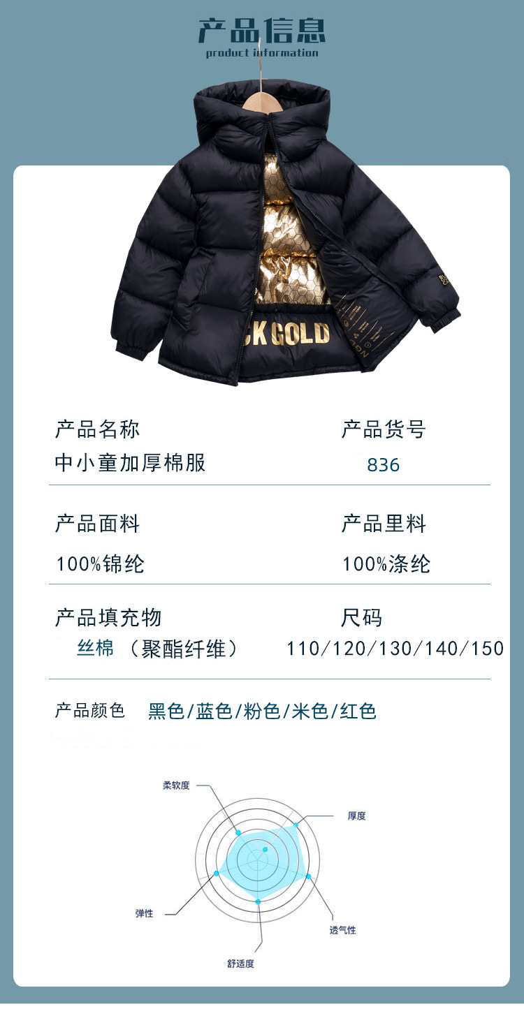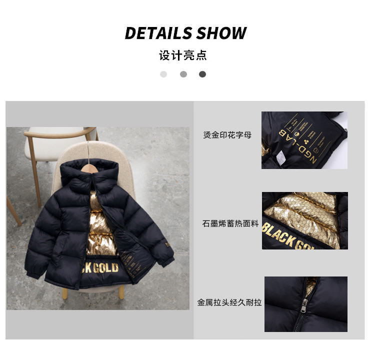 836 대외 무역 새로운 아동면 패딩 재킷 아동복 블랙 골드 그래 핀 아동복 겨울 코트 소년 소녀