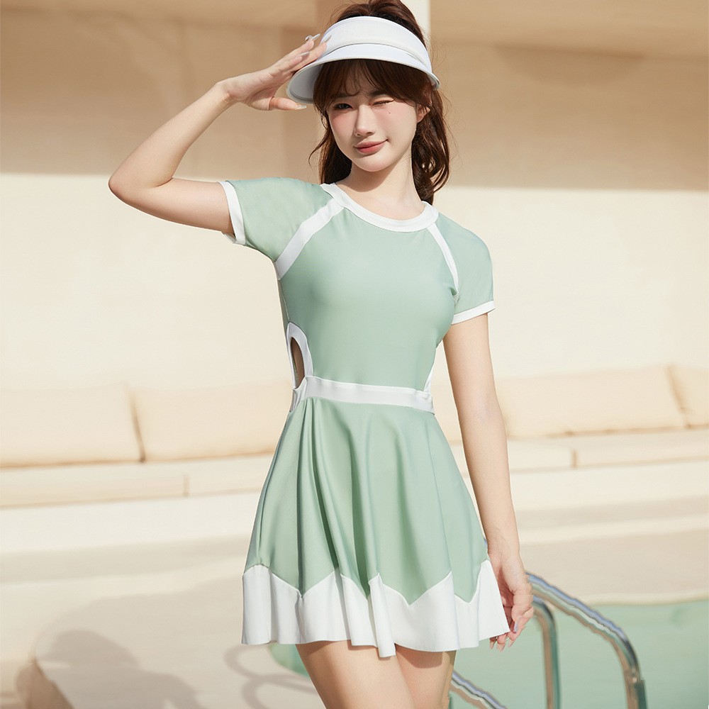 수영복 여성 패션 새로운 하이 엔드 원피스 스커트 배꼽 덮개 슬리밍 수영장 특별 온천 해변 휴가 수영복스토어 가기