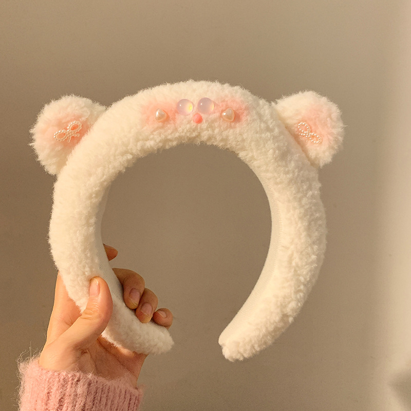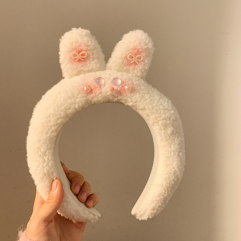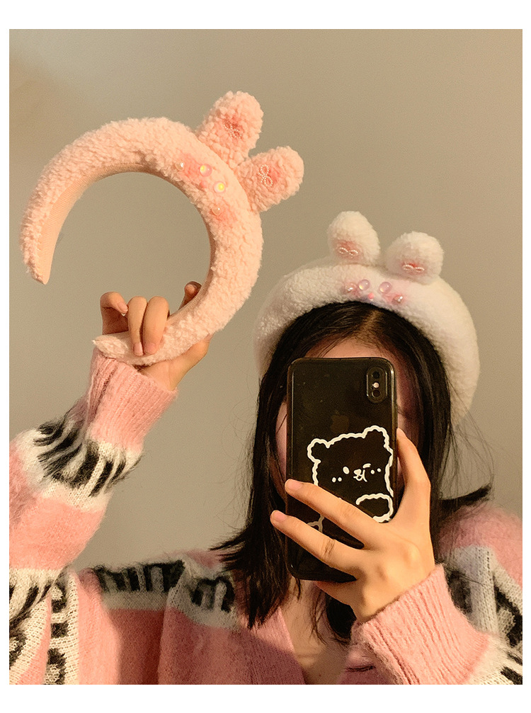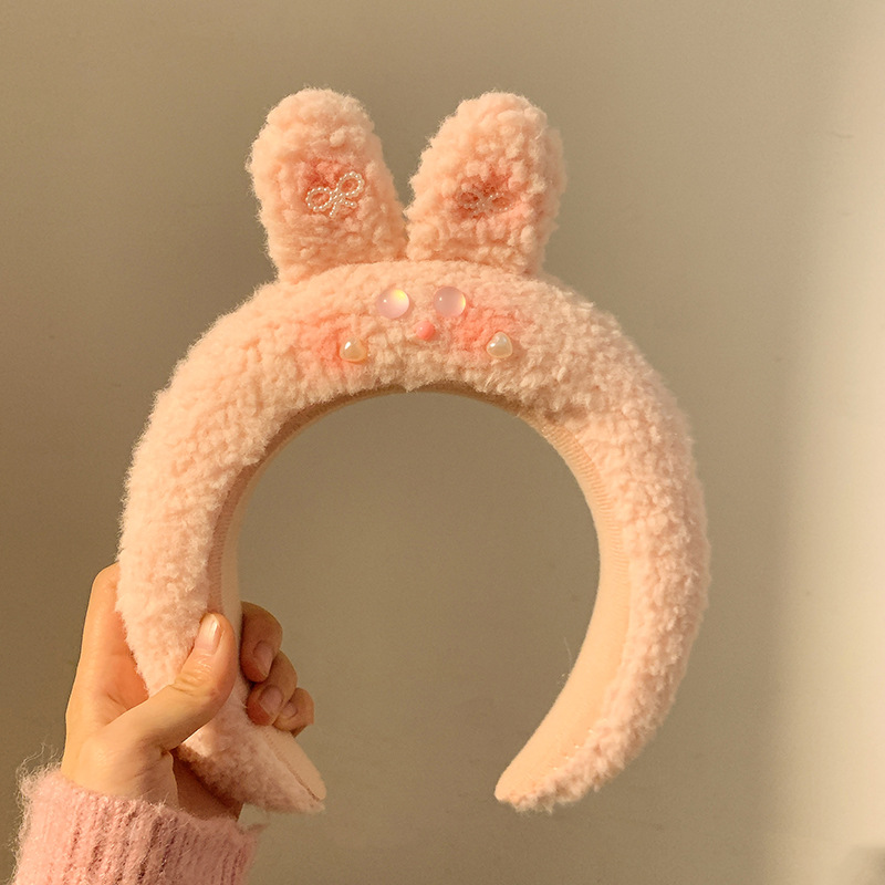 홍당무 수줍은 토끼 봉제 헤어 밴드 여성용 하이 두개골 탑 워시 페이스 적용 마스크 사진 머리띠 헤어 밴드 헤어 액세서리 모자스토어 가기