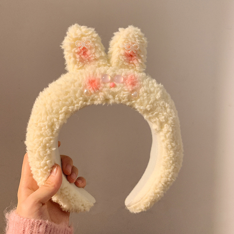 홍당무 수줍은 토끼 봉제 헤어 밴드 여성용 하이 두개골 탑 워시 페이스 적용 마스크 사진 머리띠 헤어 밴드 헤어 액세서리 모자