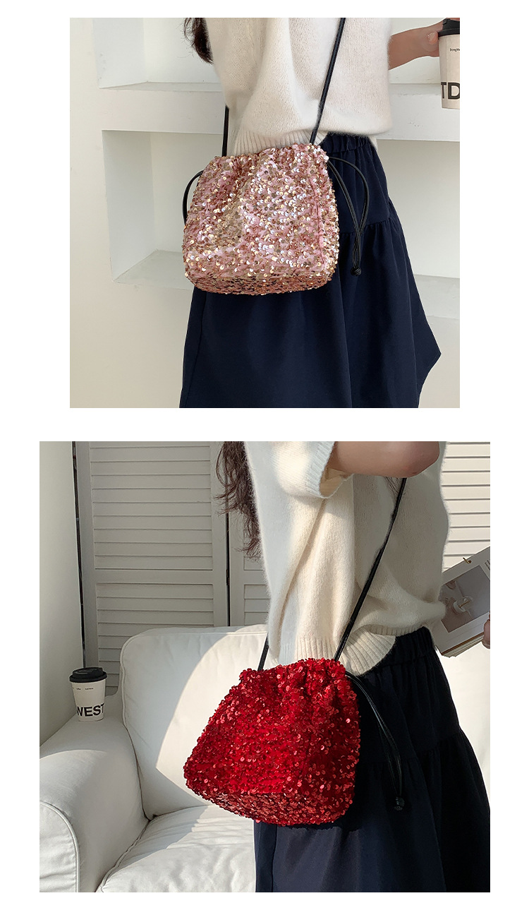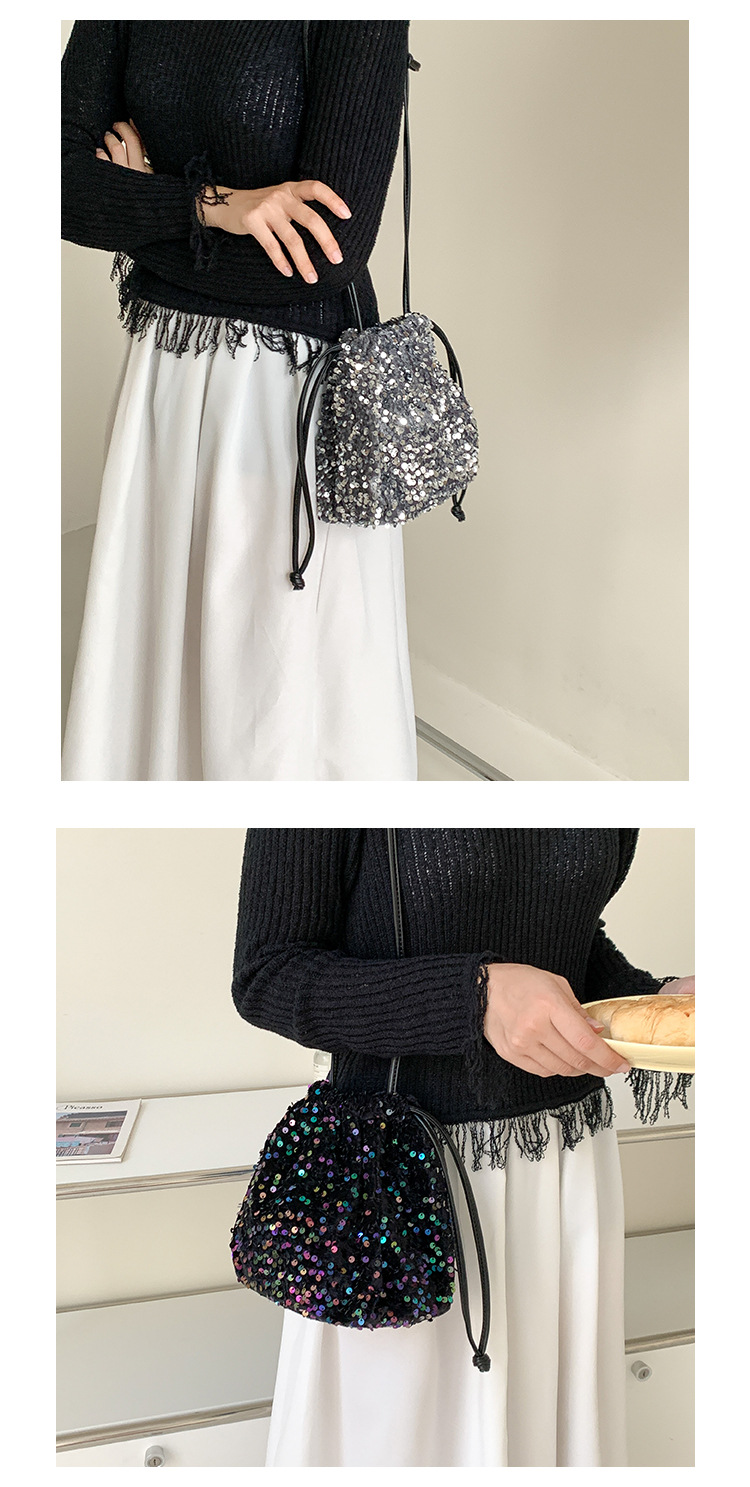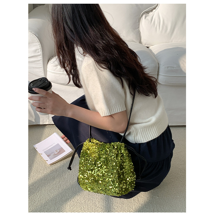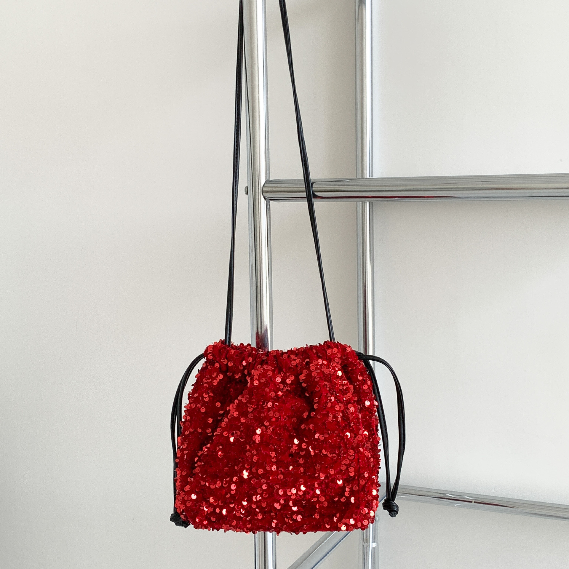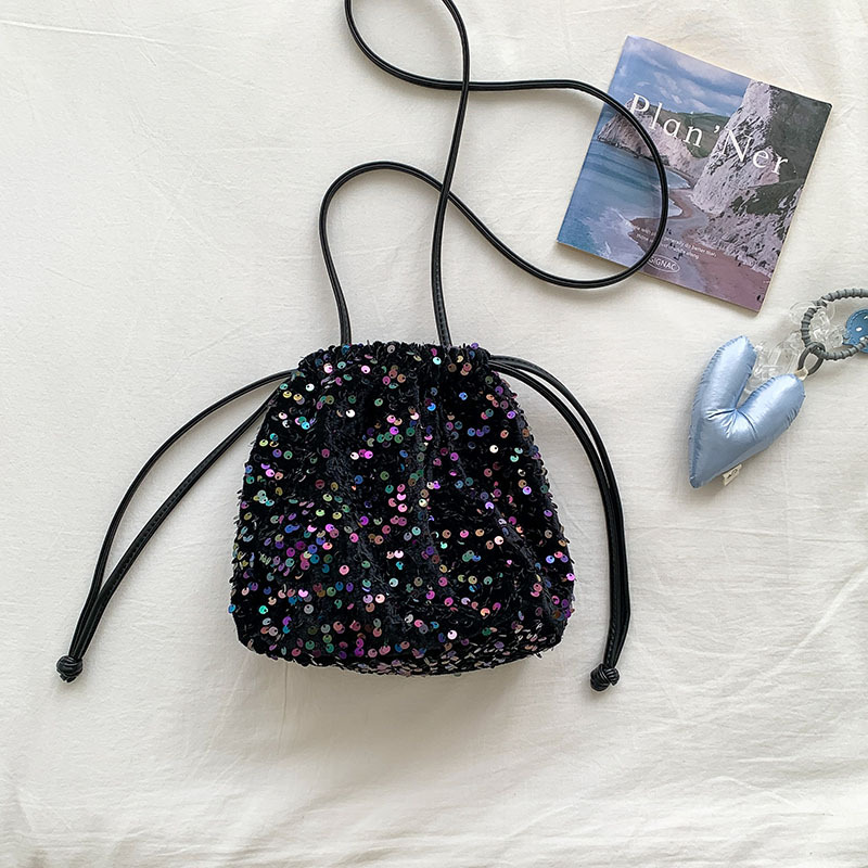 한국 스몰 스팽글 버킷 백 하이 엔드 트렌디 소프트 코르셋 숄더백 틈새 유행 독특한 크로스바디 백