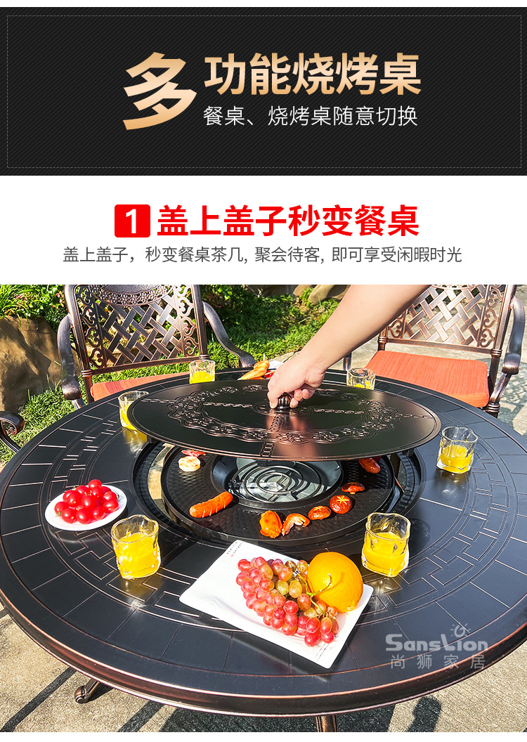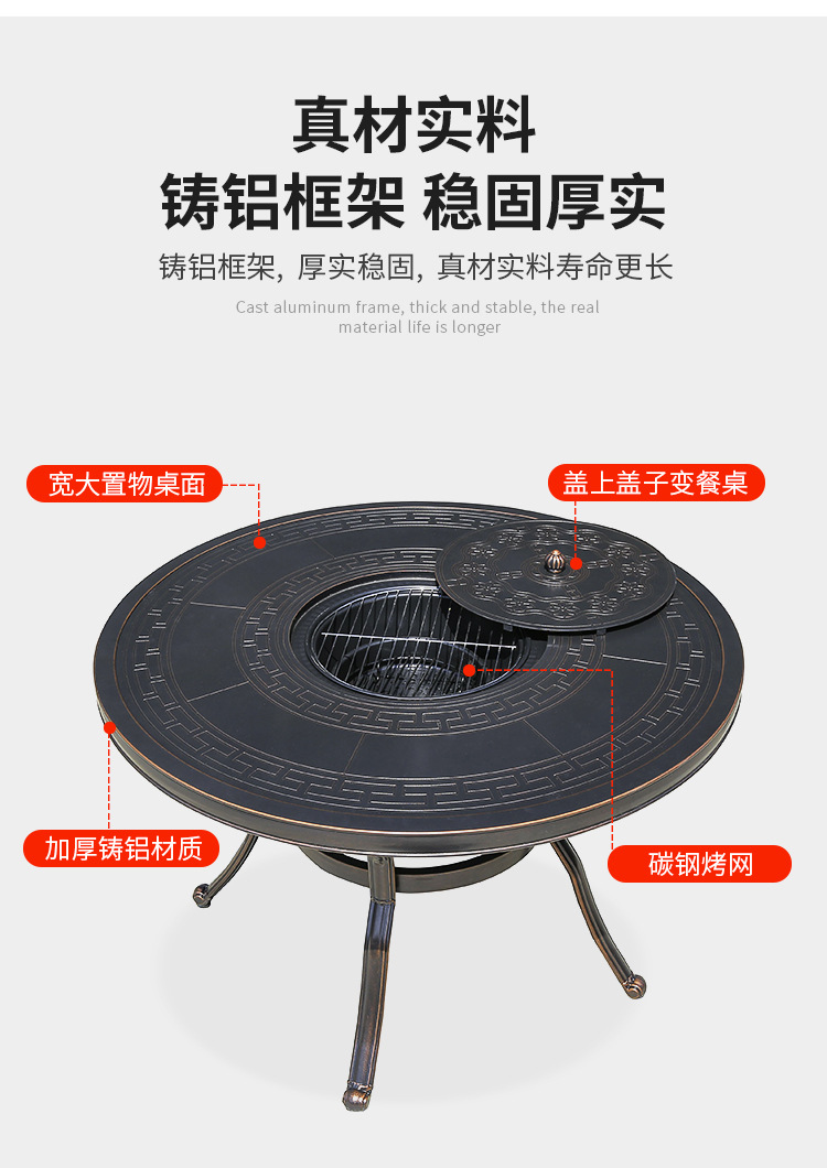 야외 바베큐 테이블 및 의자 인클로저 스토브 차 식탁 및 의자 가정용 캐스트 알루미늄 부식 방지 안뜰 빌라 정원 야외 냄비 테이블스토어 가기