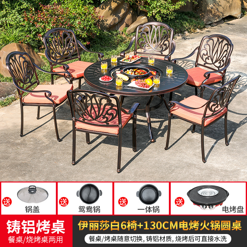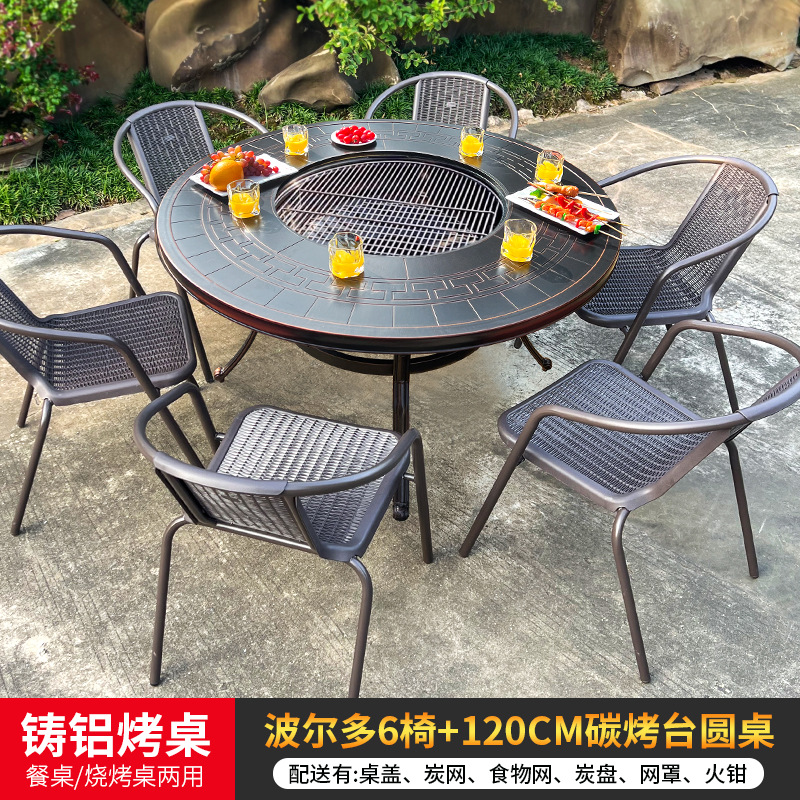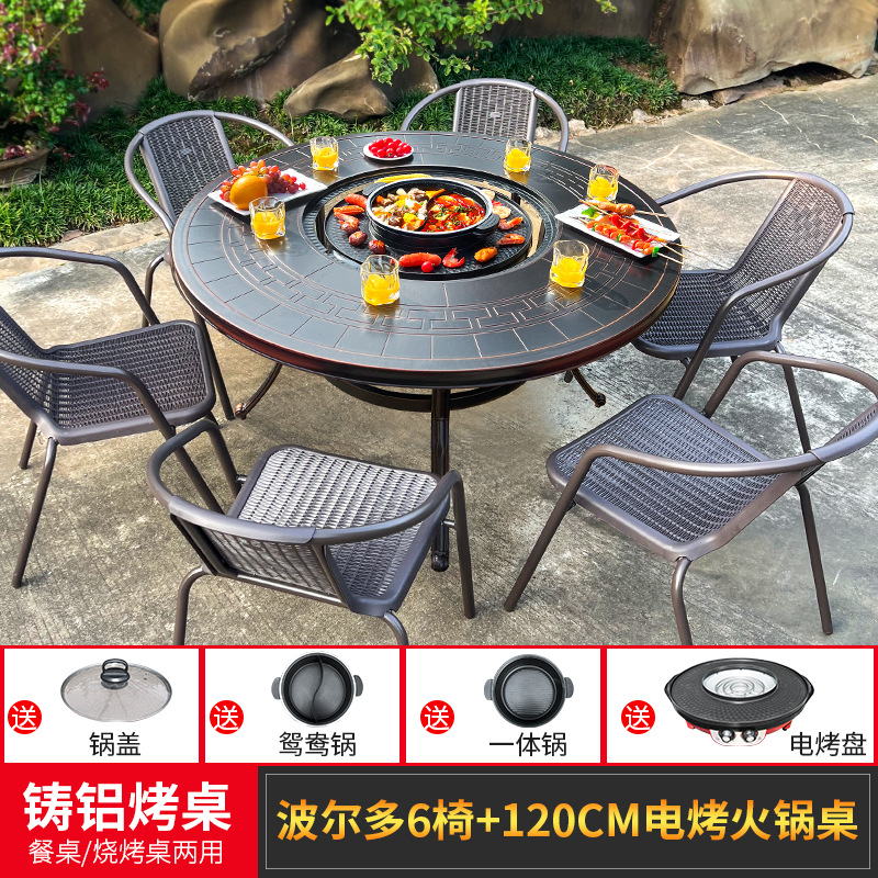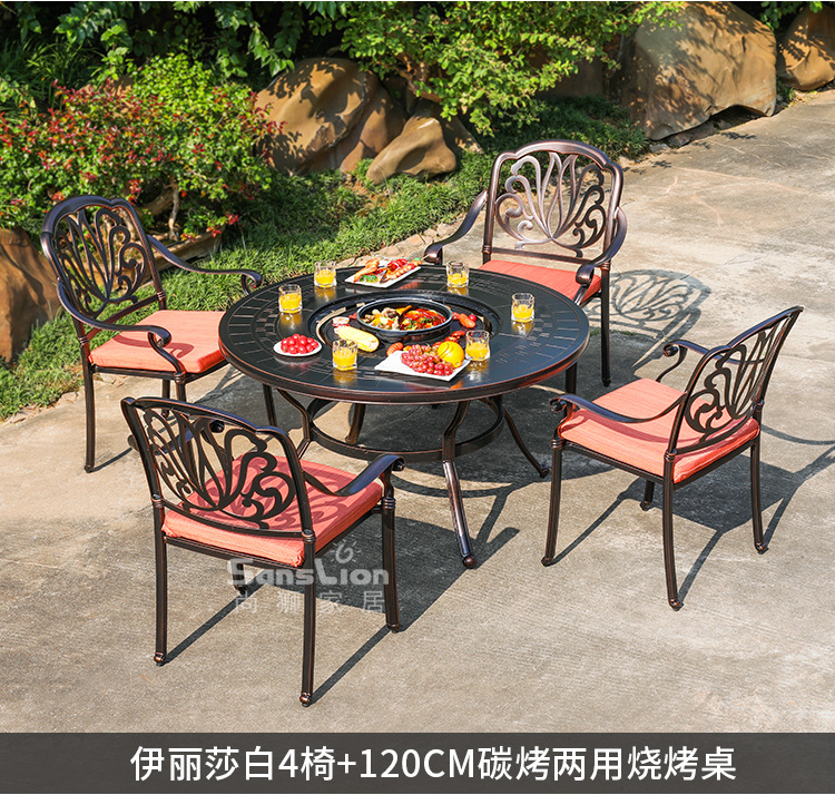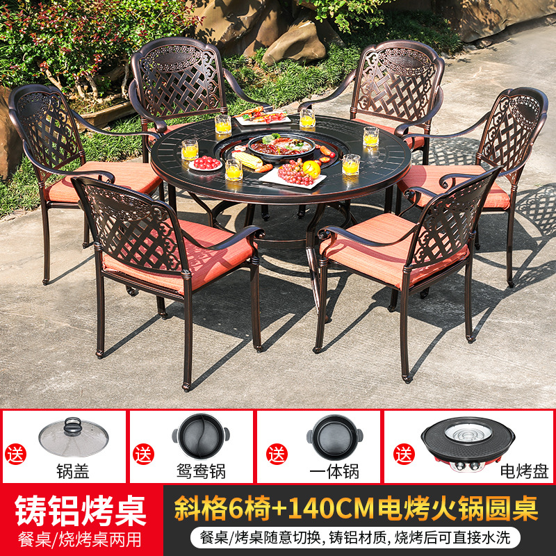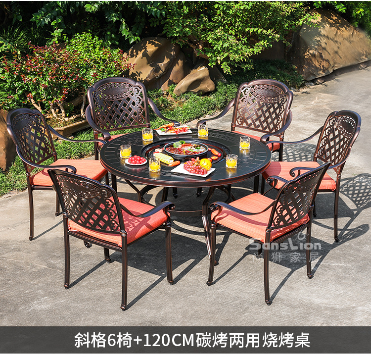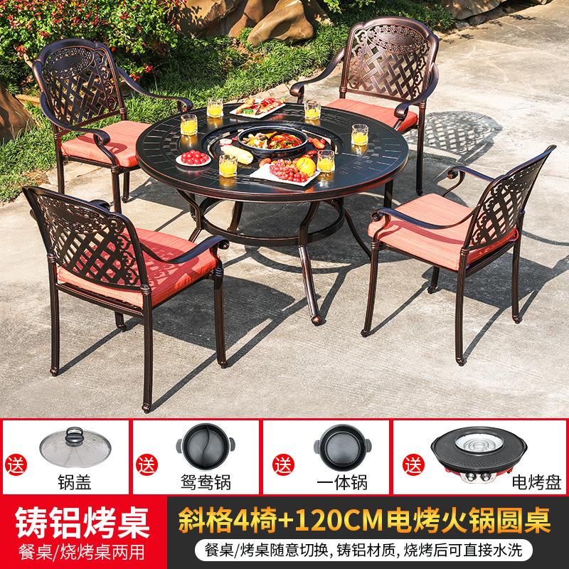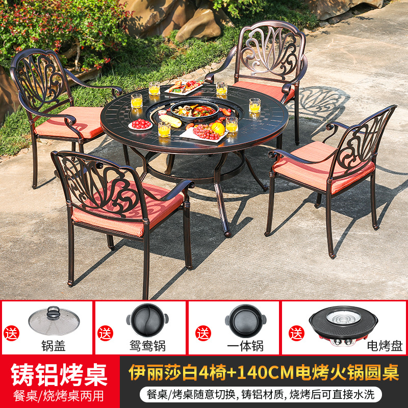 야외 바베큐 테이블 및 의자 인클로저 스토브 차 식탁 및 의자 가정용 캐스트 알루미늄 부식 방지 안뜰 빌라 정원 야외 냄비 테이블