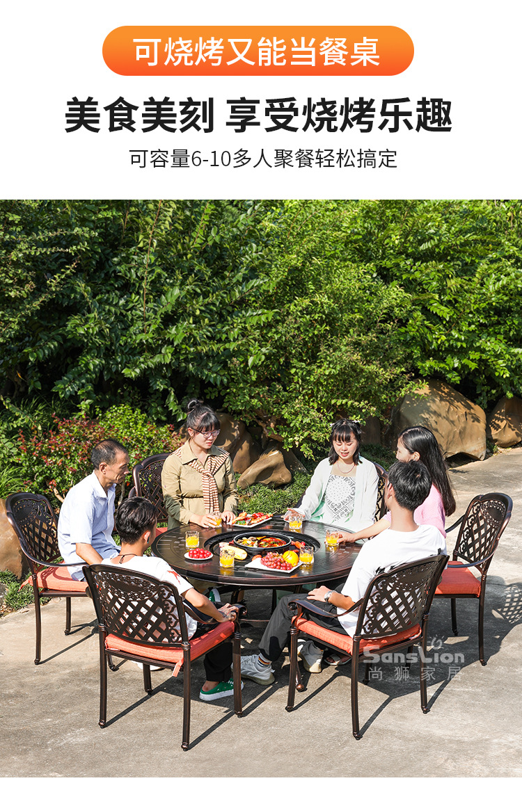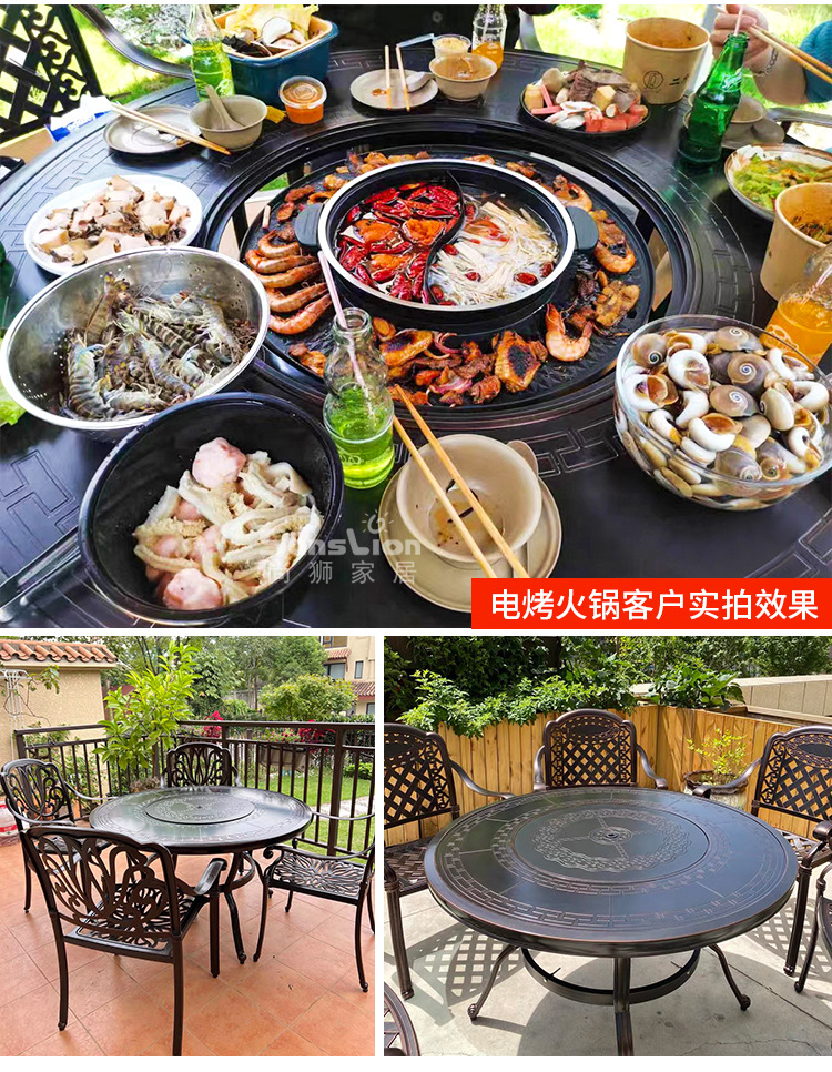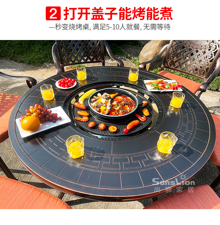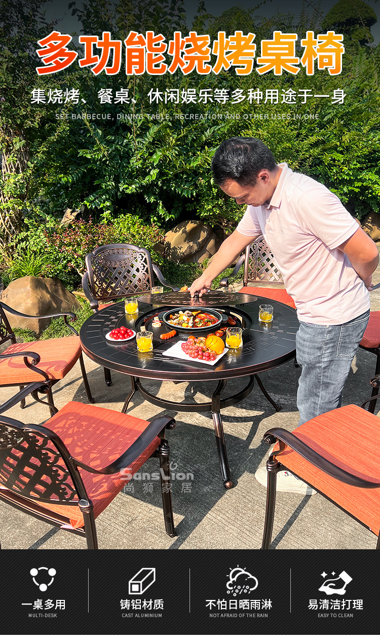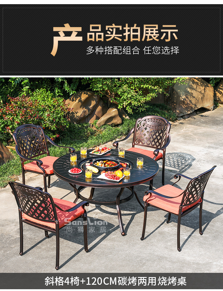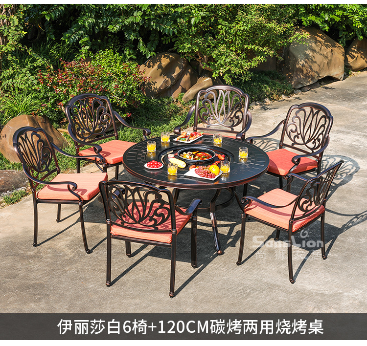 야외 바베큐 테이블 및 의자 인클로저 스토브 차 식탁 및 의자 가정용 캐스트 알루미늄 부식 방지 안뜰 빌라 정원 야외 냄비 테이블