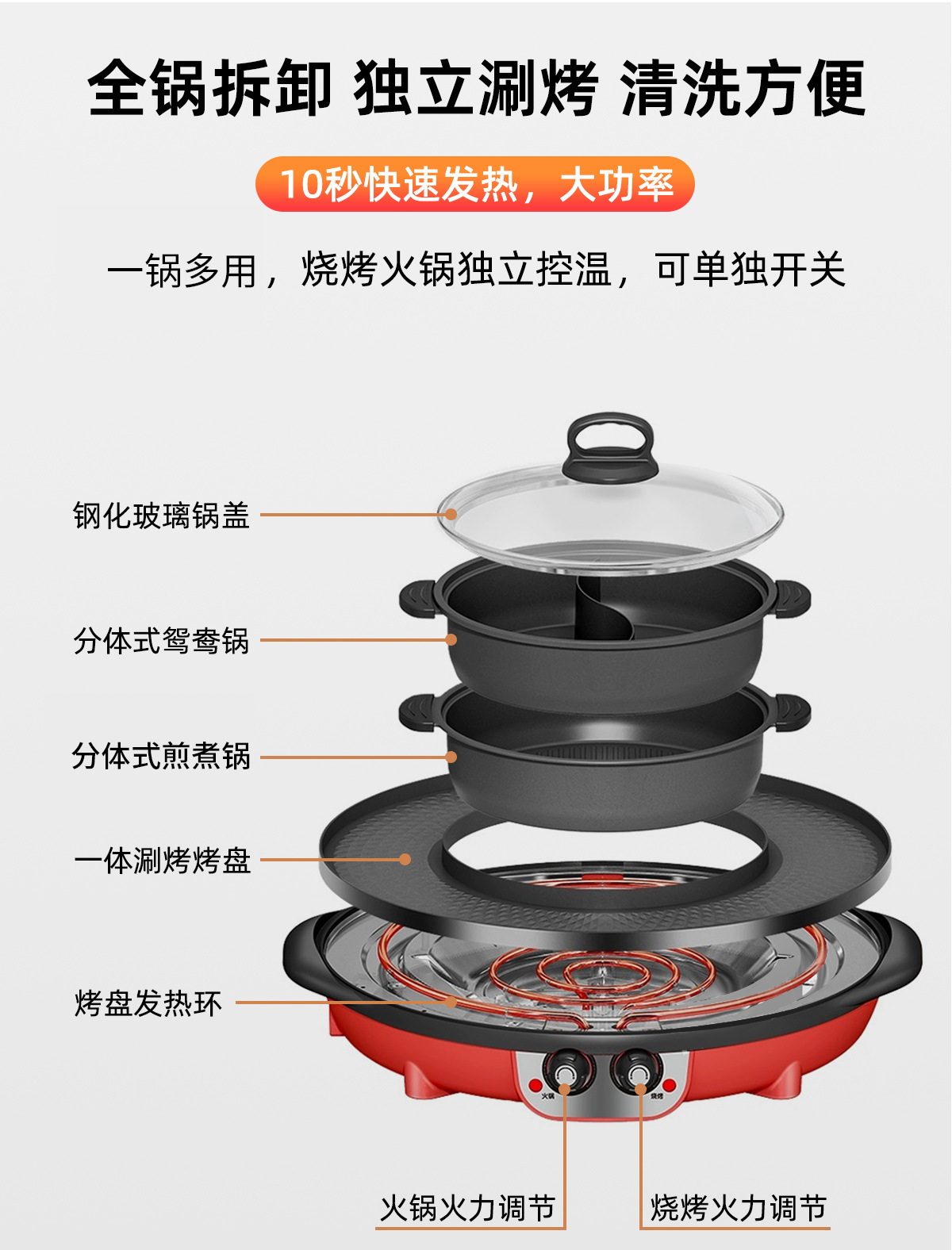 • 비스듬한 의자 6 개 + 140cm 전기 볶은 냄비 원형 테이블