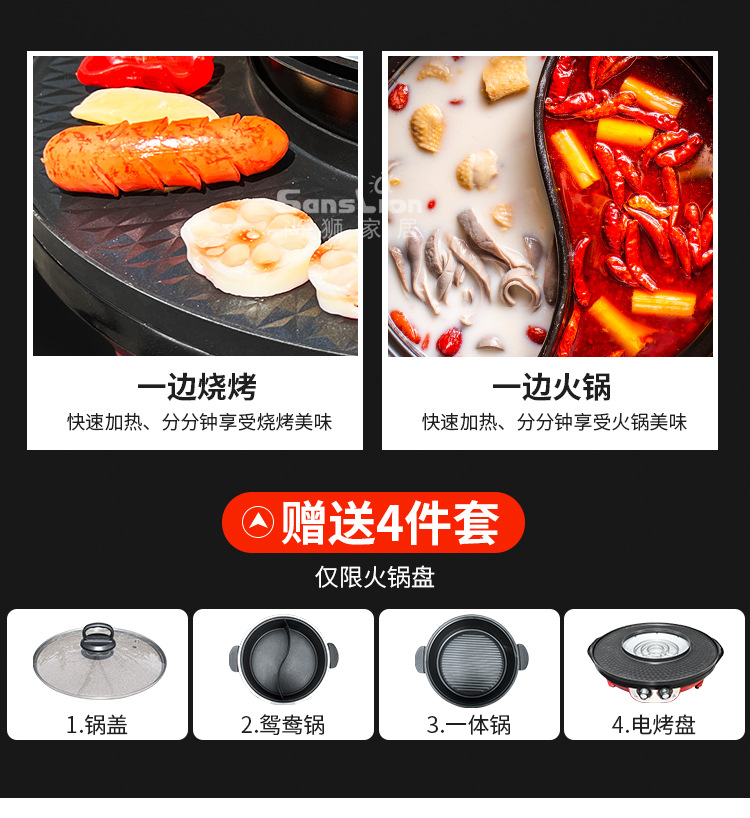 • 비스듬한 의자 4 개 + 120cm 전기 볶은 냄비 원형 테이블