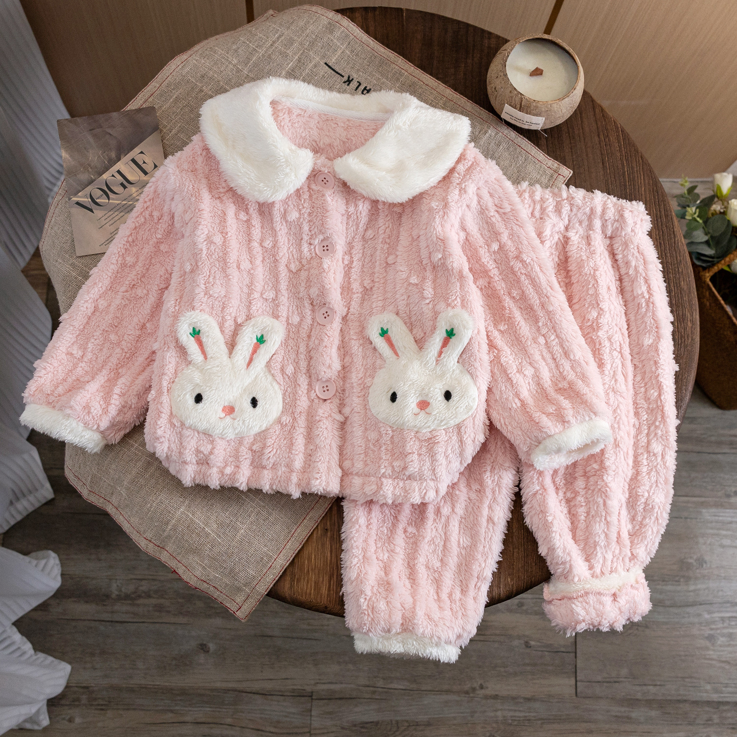 소녀의 플란넬 잠옷 가을과 겨울 소녀의 공주 기모 두꺼운 겨울 어린이 아기의 산호 양털 가정 옷스토어 가기