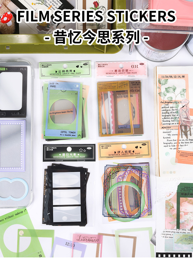 과거와 현재 생각하는 손 계정 pvc 방수 스티커 복고풍 테두리 어린이 스티커 스타일 사진 장식 테두리 스티커스토어 가기