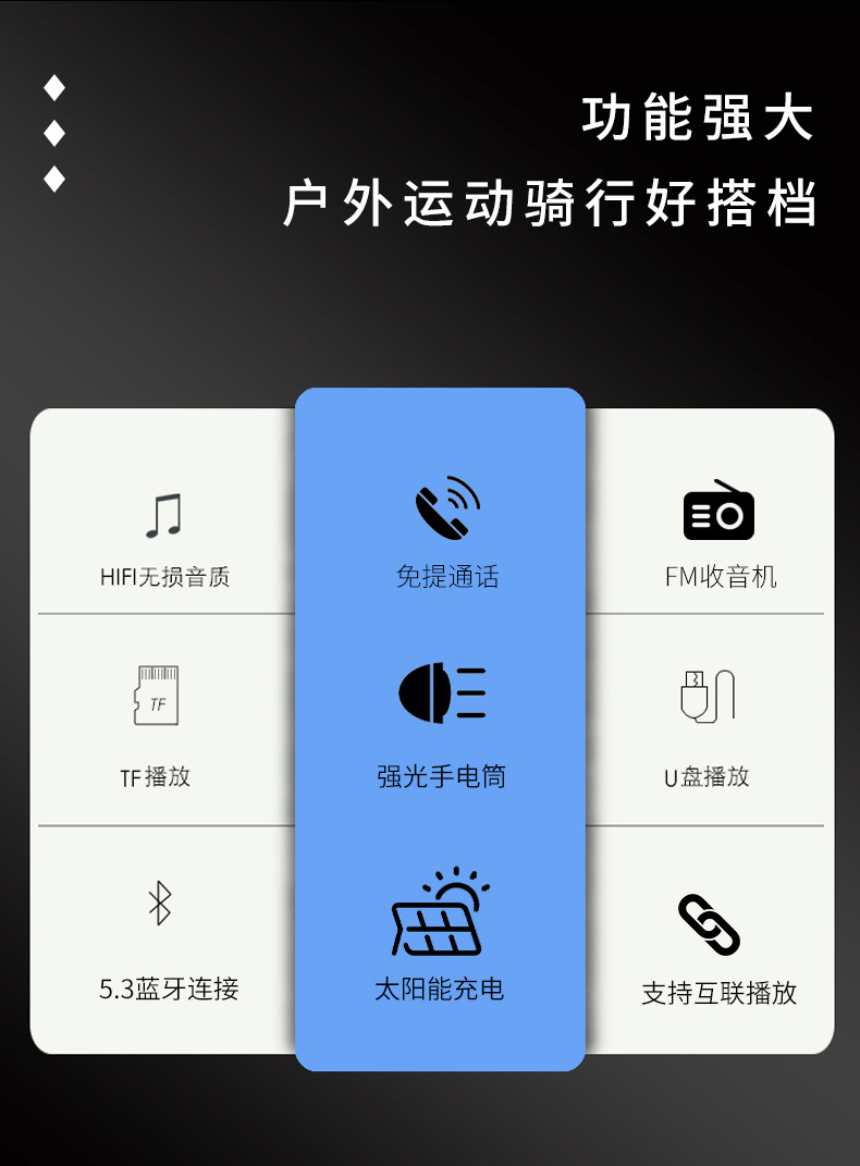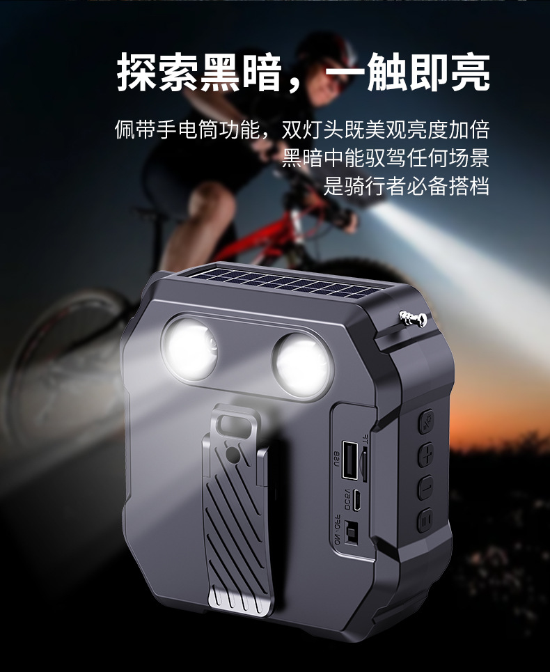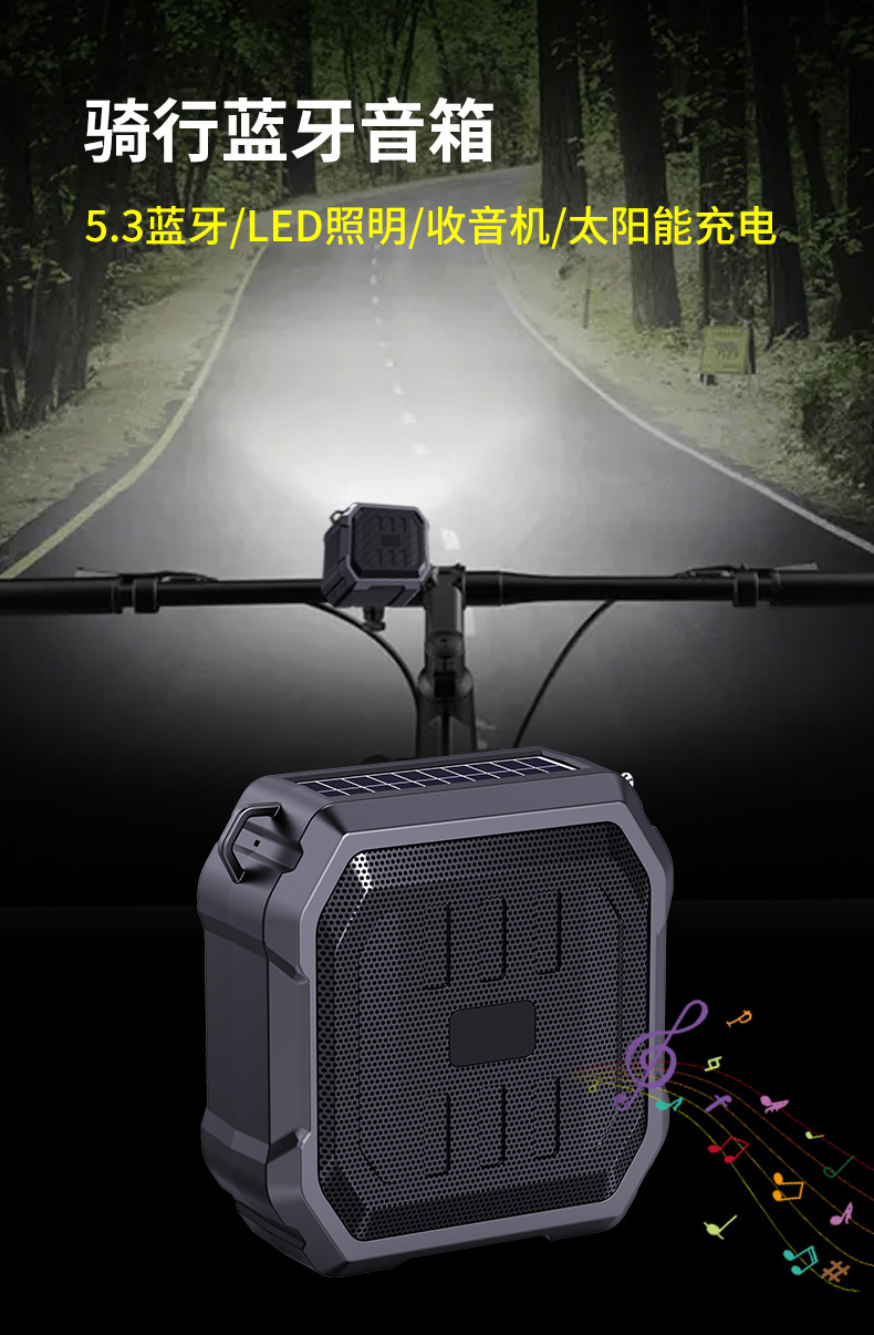 스탠드가있는 야외 라이딩 스피커 블루투스 태양열 손전등 편리한 다기능 자전거 미니 사운드