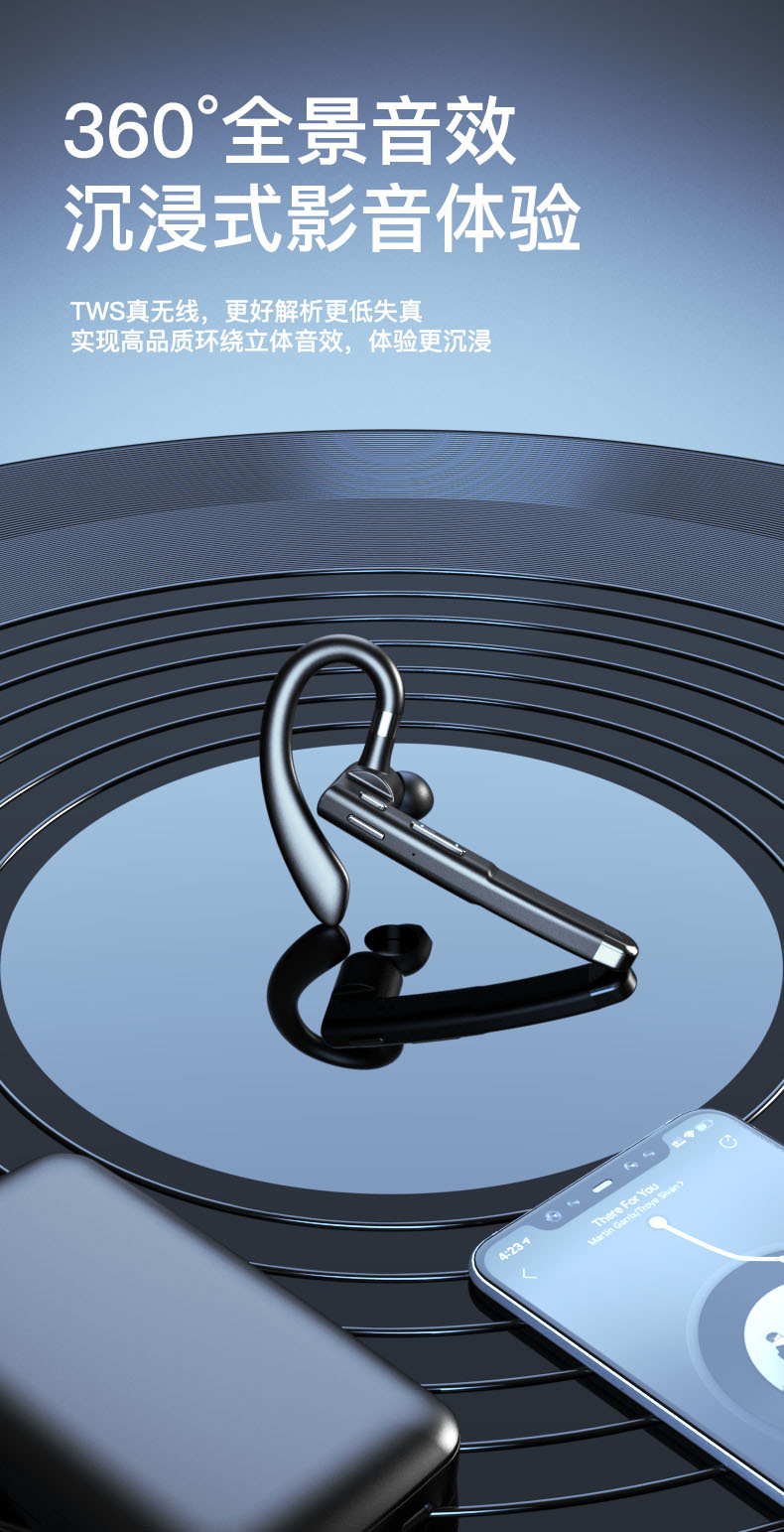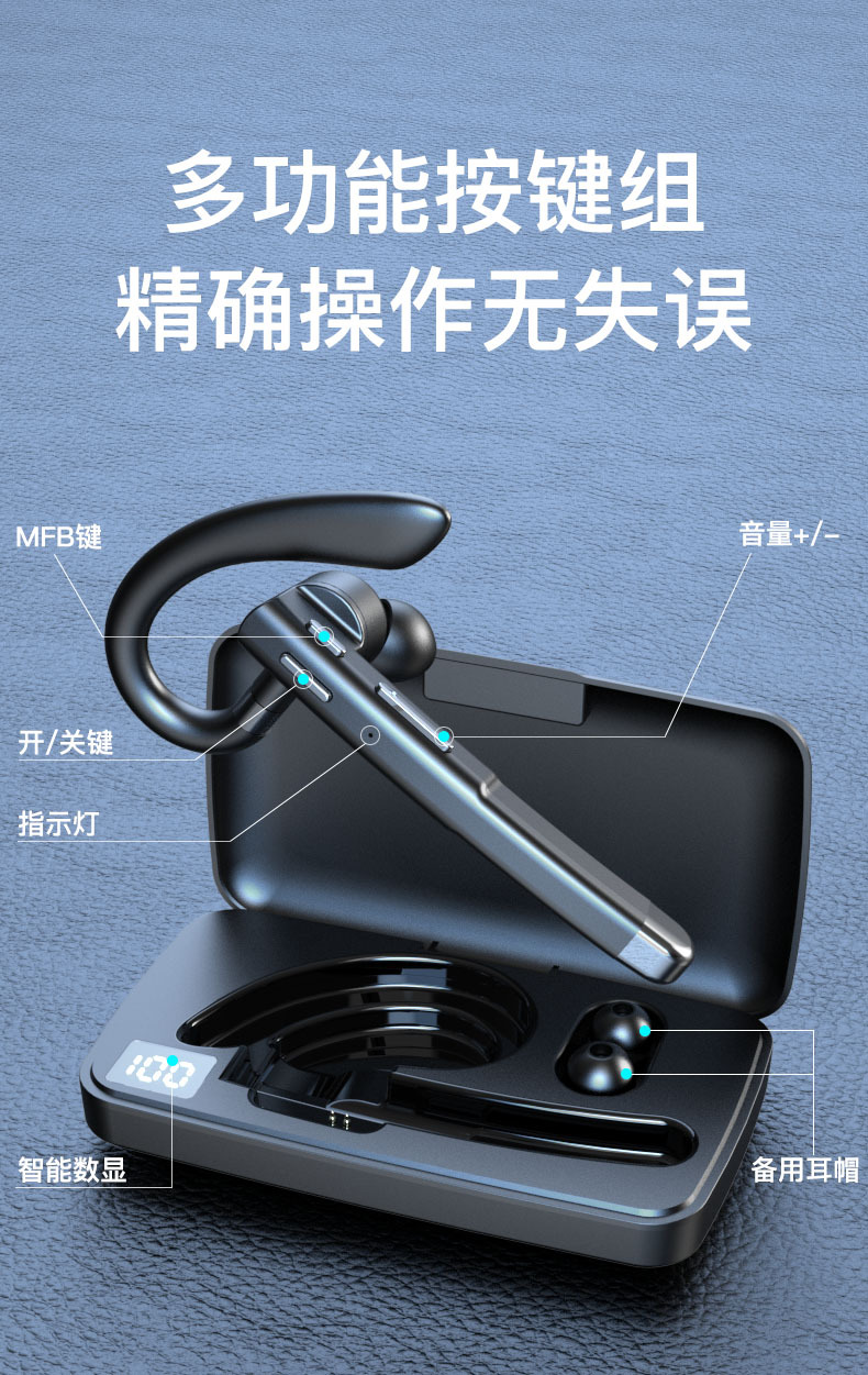폭발적인 싱글 이어 비즈니스 블루투스 헤드셋 YYK520 긴 내구성 귀 걸이 디지털 디스플레이 지능형 소음 감소 통화 헤드셋