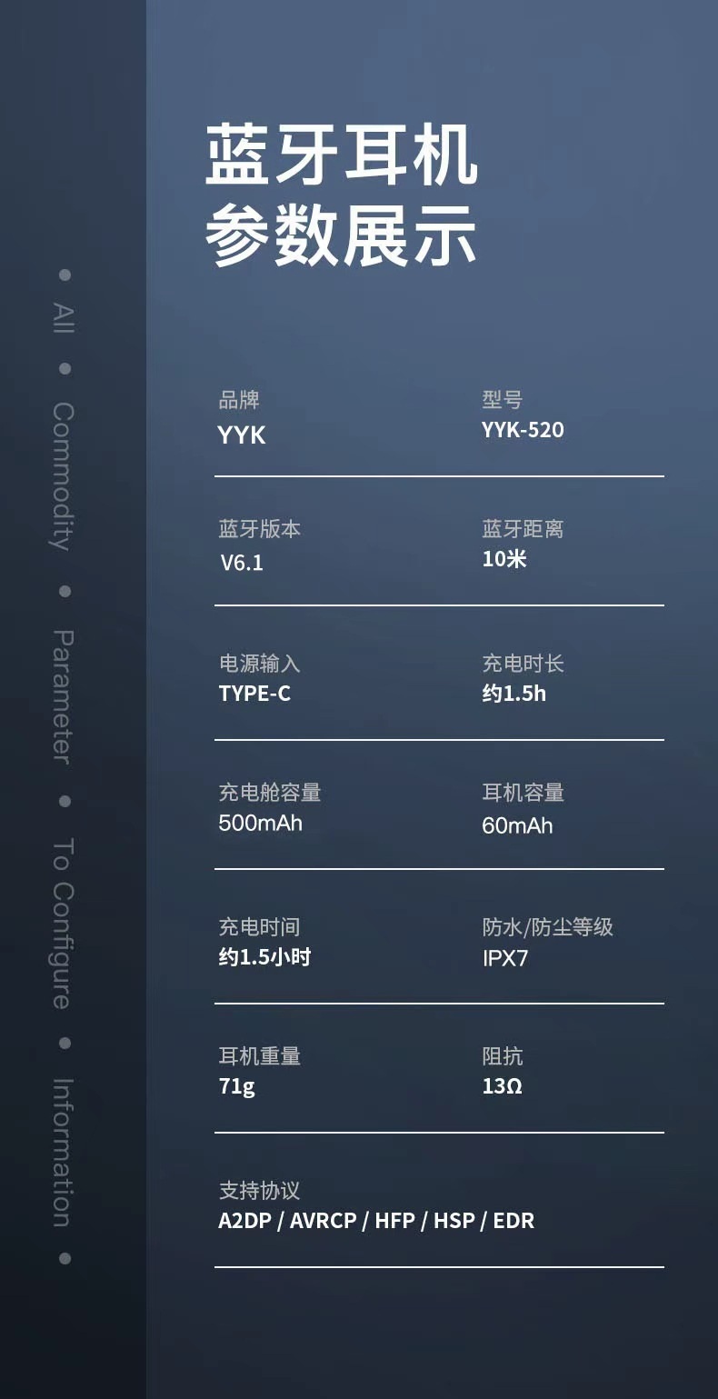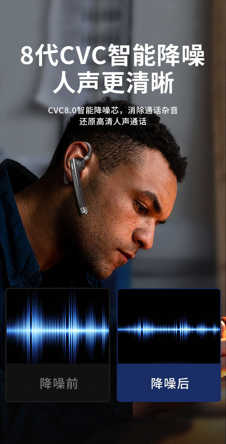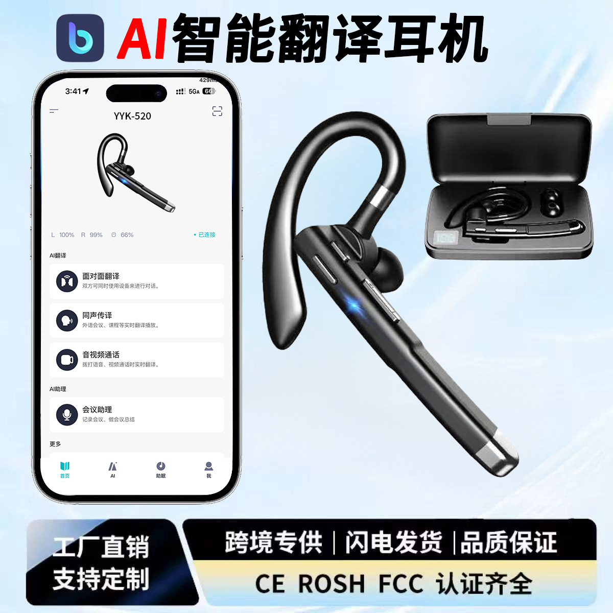 폭발적인 싱글 이어 비즈니스 블루투스 헤드셋 YYK520 긴 내구성 귀 걸이 디지털 디스플레이 지능형 소음 감소 통화 헤드셋스토어 가기
