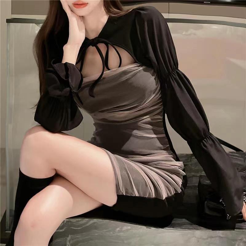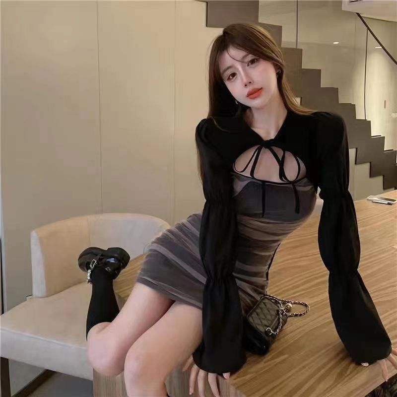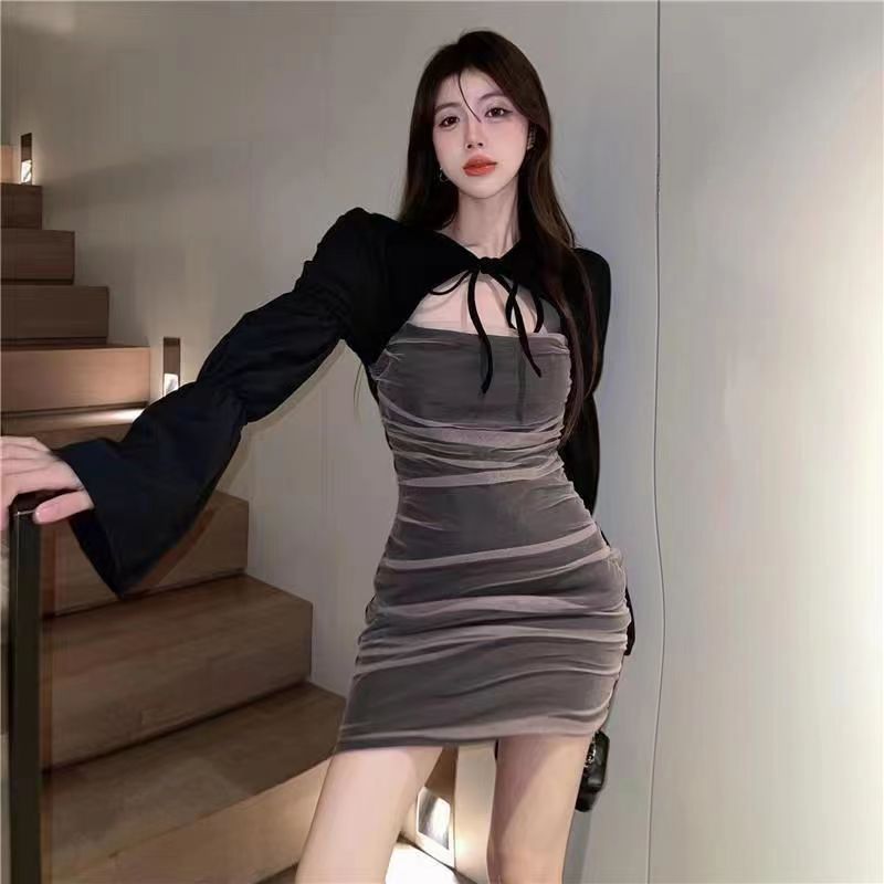 섹시하고 순수한 매력의 달콤한 스커트, 2025년 봄 신상, 우아한 메쉬 슬림핏 힙을 감싸는 원피스 여성복스토어 가기