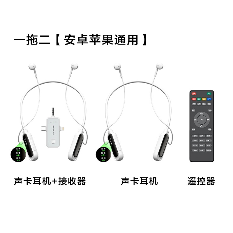 • [더블 모델 - Haoyue White] 사운드 카드 헤드폰 2쌍 + 3-in-1 수신기 + 다기능 리모콘