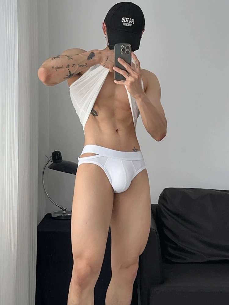 남자의 팬티 특대 포켓 속옷 남자의 낮은 허리 U-볼록한 허리 중공 섹시 편안한 단색 면 속옷