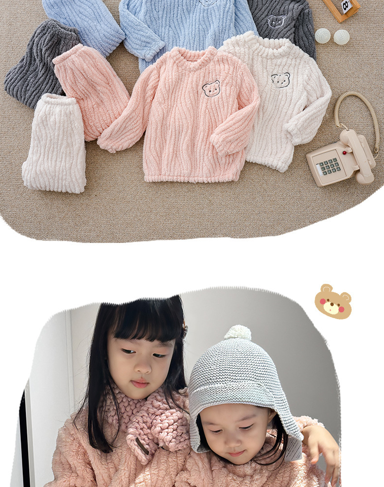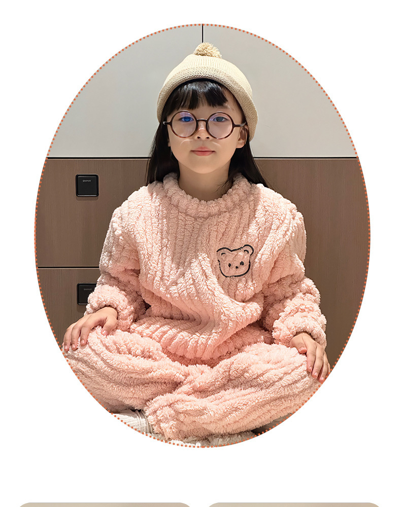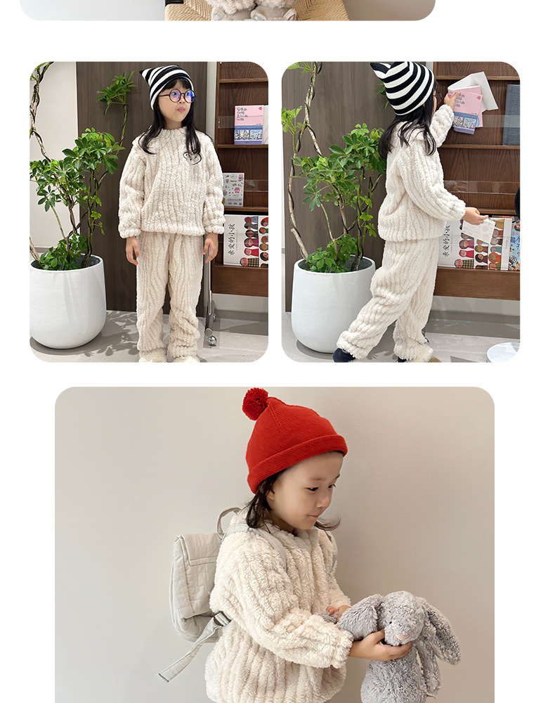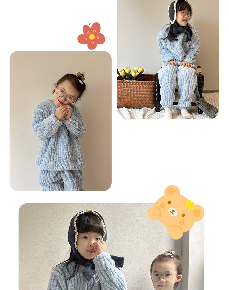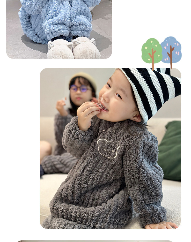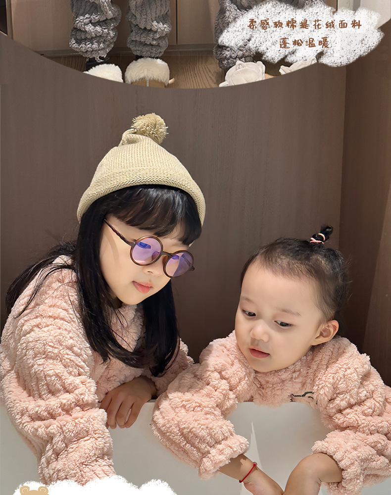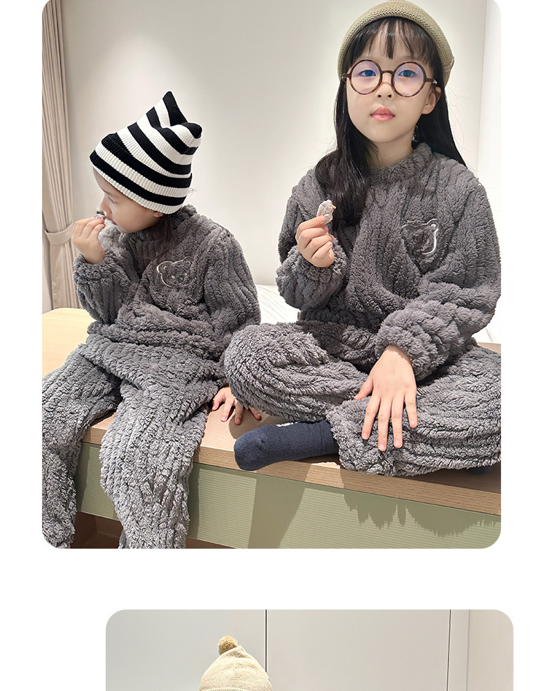 어린이 잠옷 가정 옷 세트 겨울 가을 소녀 소년 자카드 아웃웨어 기모 두꺼운 새로운 플란넬스토어 가기