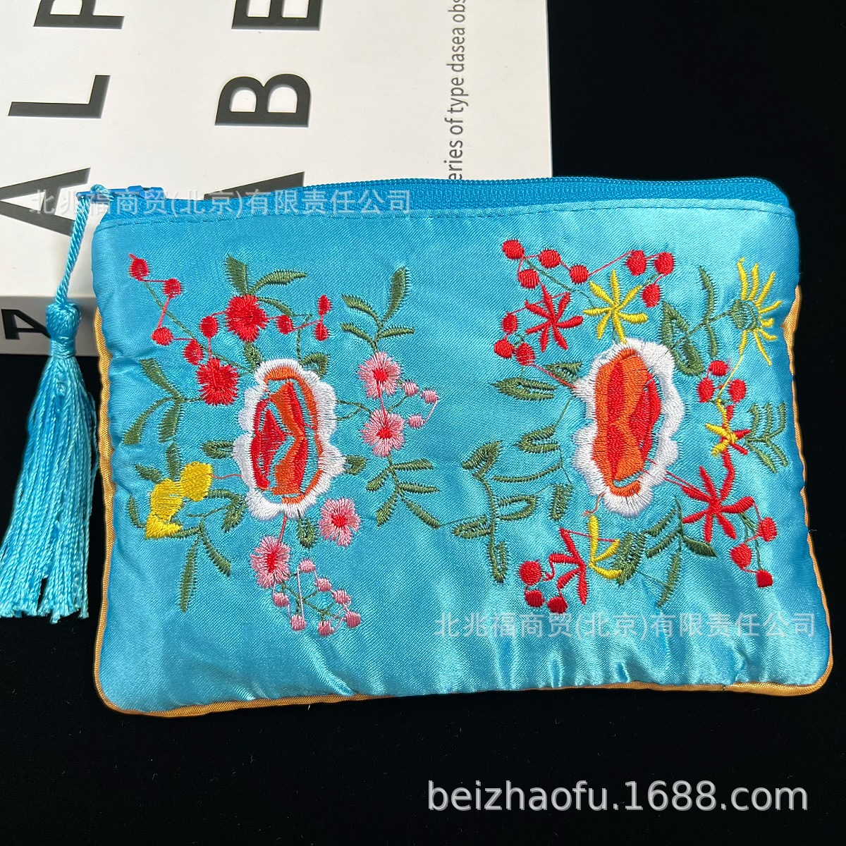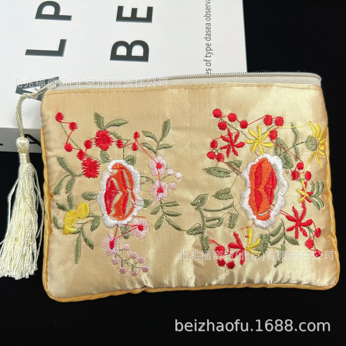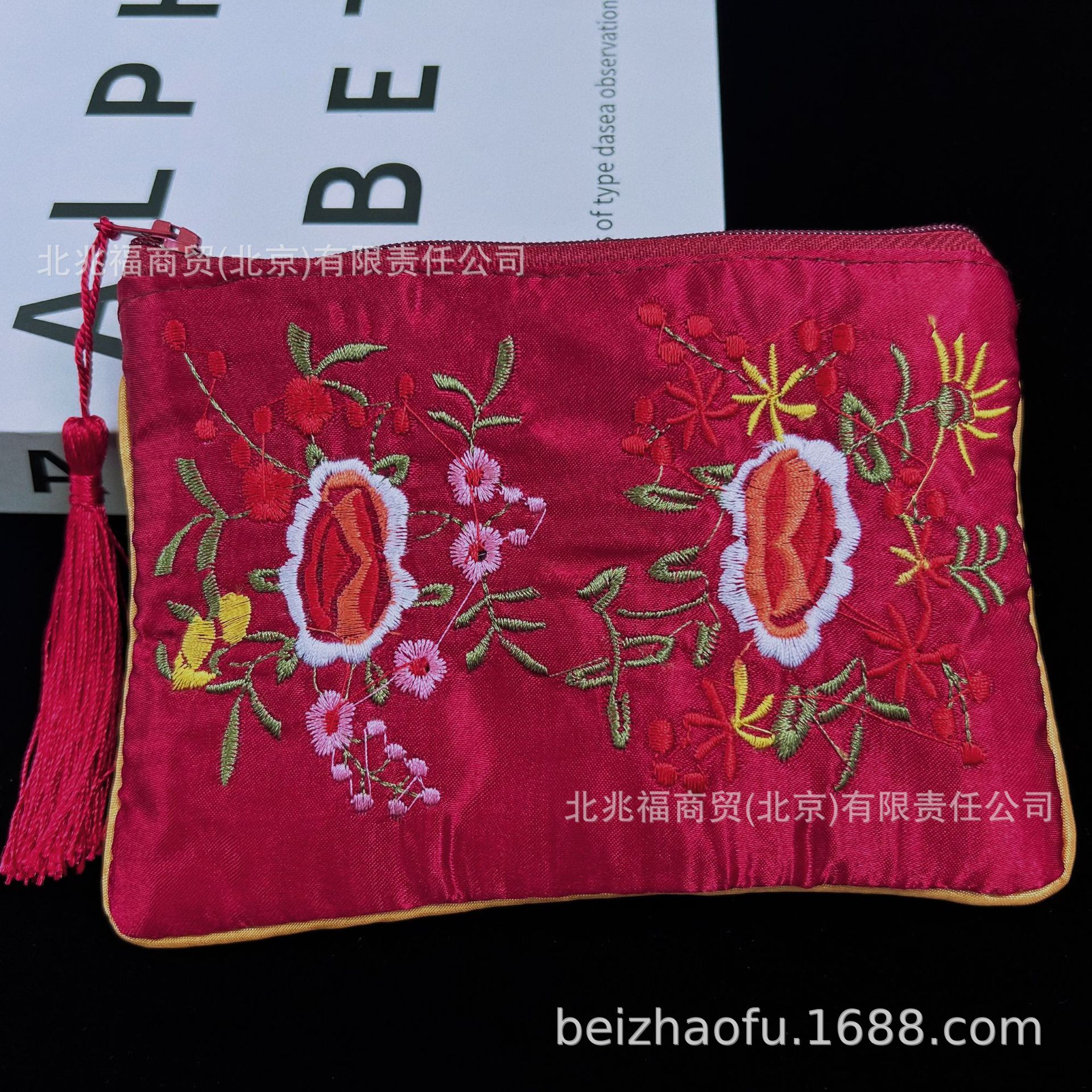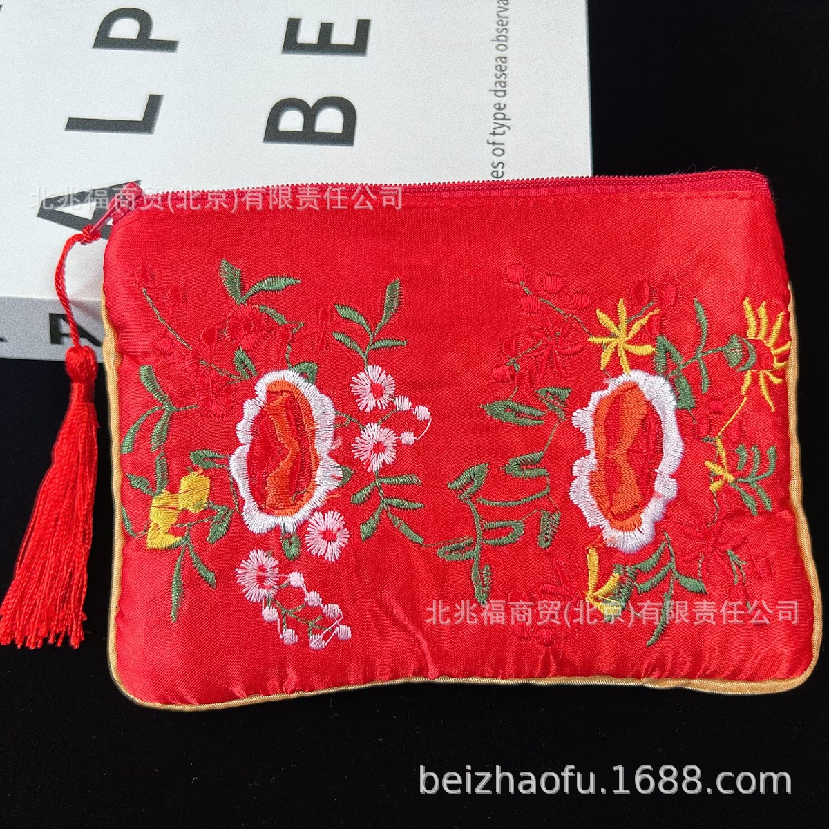 중국 자수 실크 동전 지갑 여성용 두꺼운 지퍼 보석 가방 보관 가방 중국 스타일 해외 선물스토어 가기