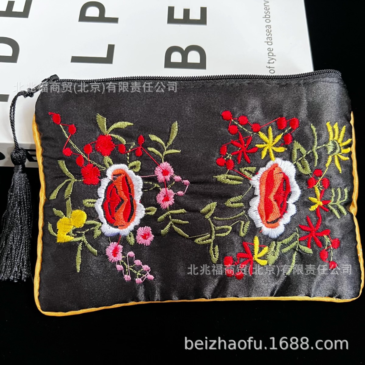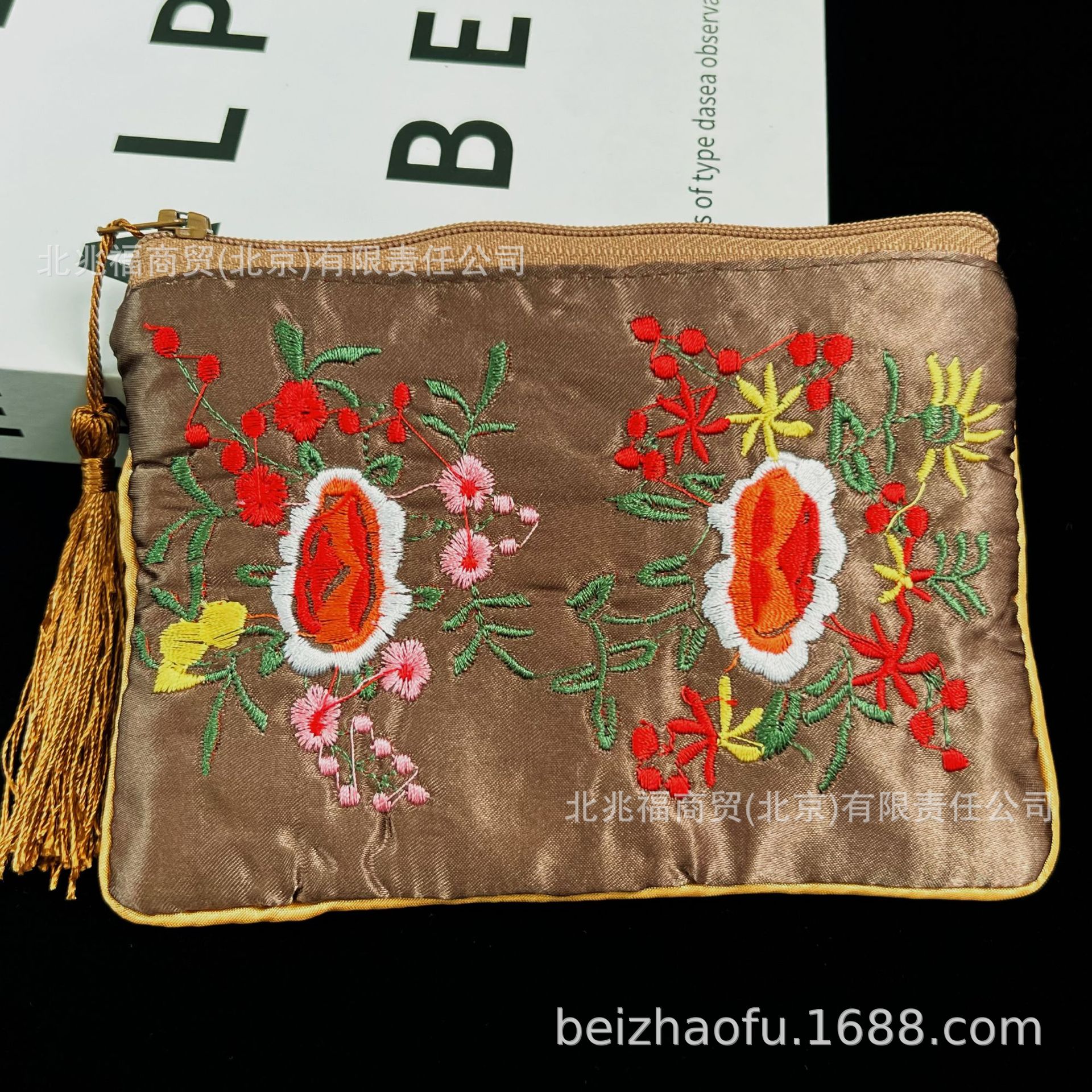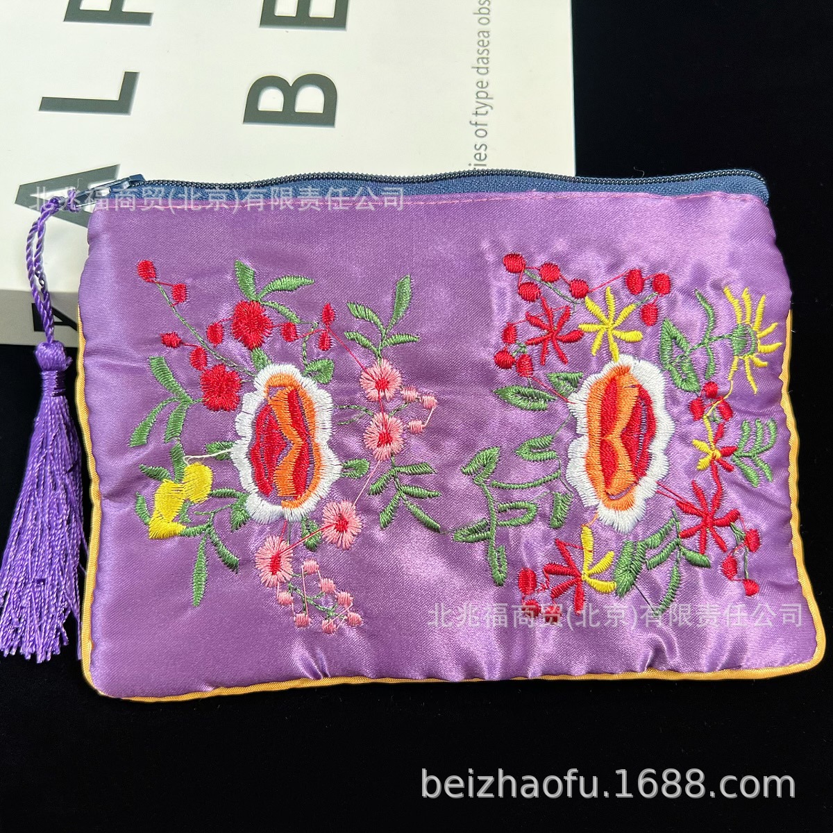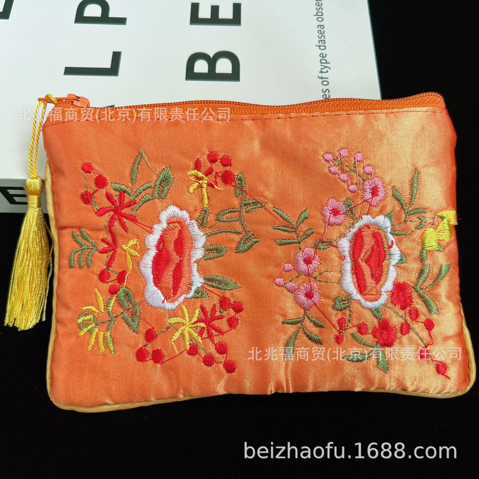 중국 자수 실크 동전 지갑 여성용 두꺼운 지퍼 보석 가방 보관 가방 중국 스타일 해외 선물스토어 가기