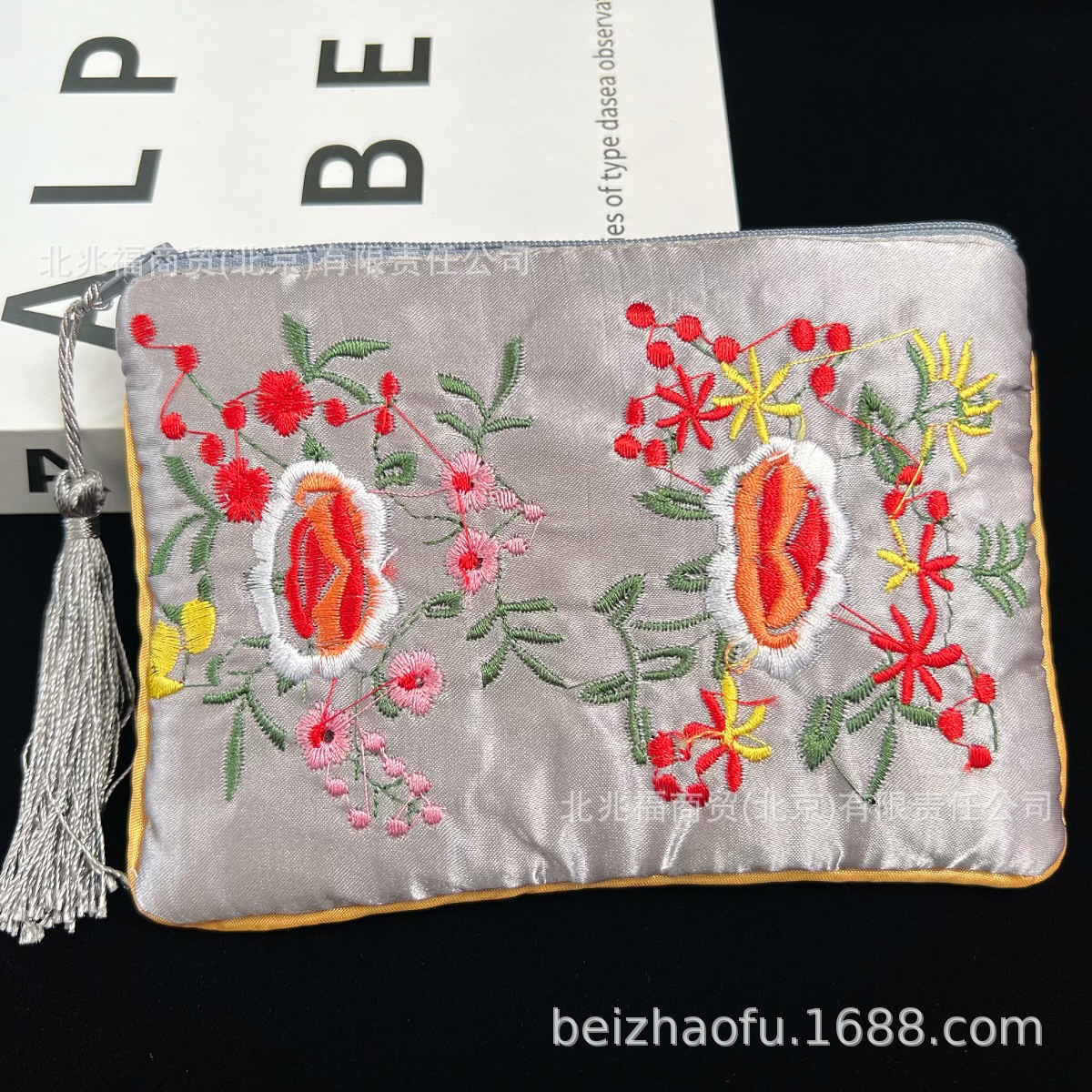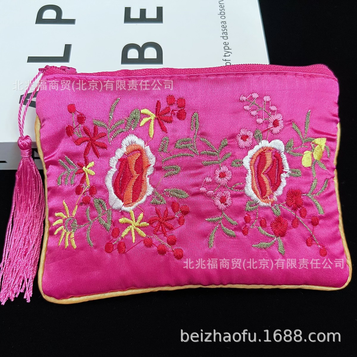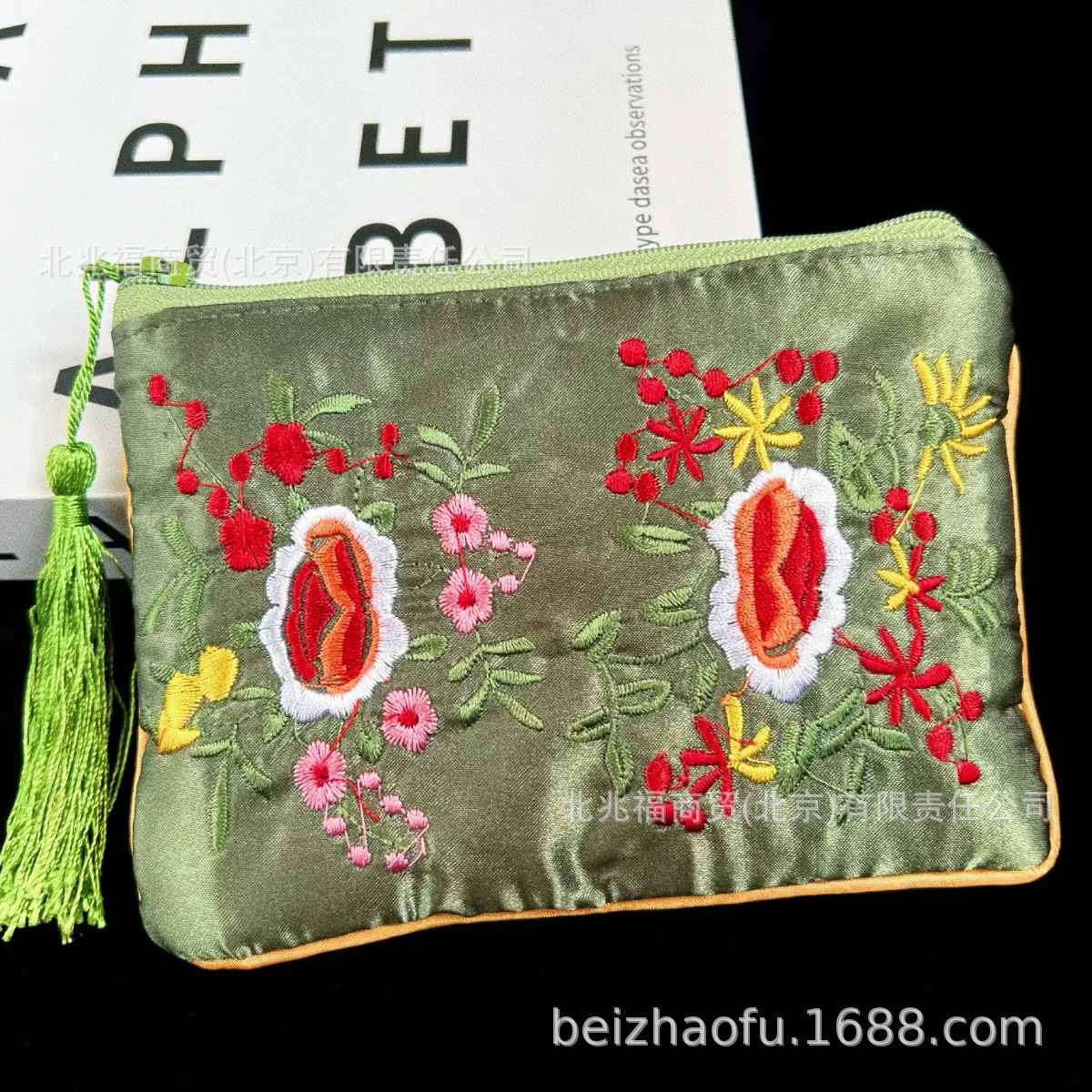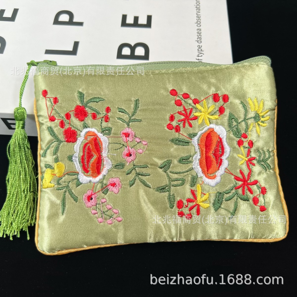 중국 자수 실크 동전 지갑 여성용 두꺼운 지퍼 보석 가방 보관 가방 중국 스타일 해외 선물스토어 가기
