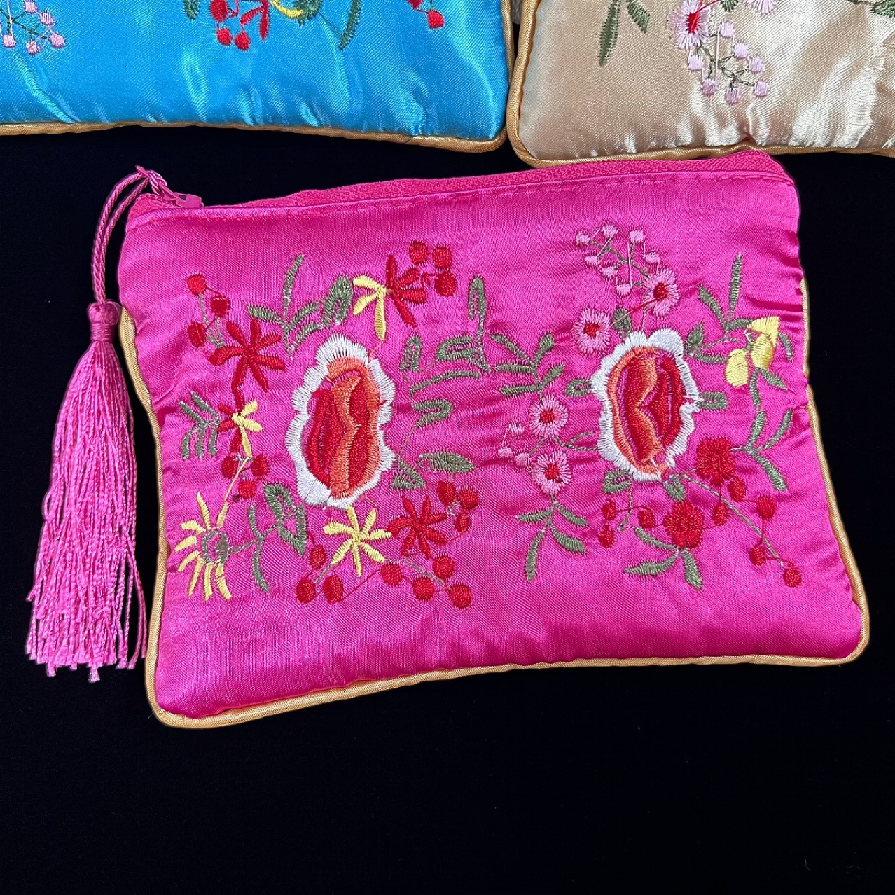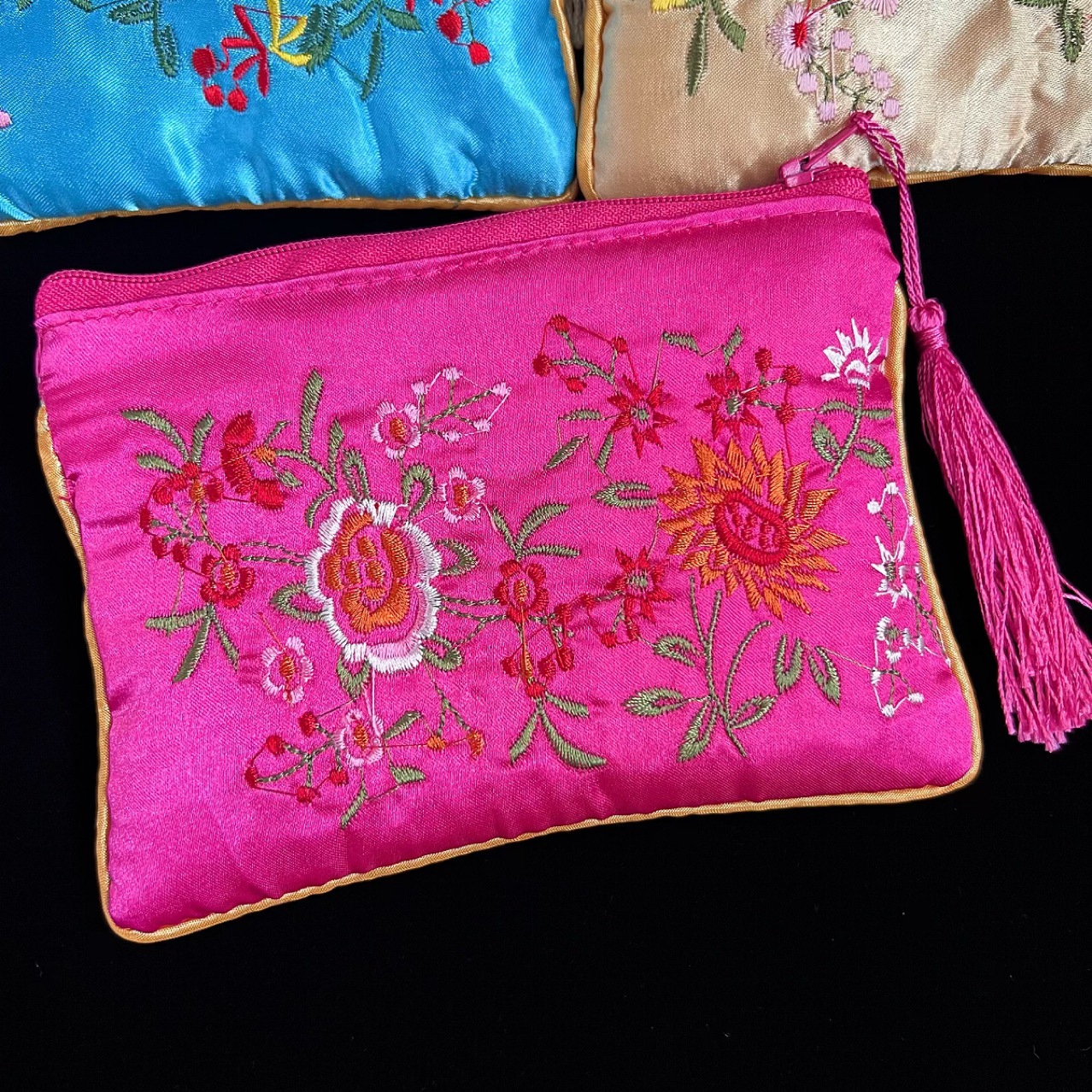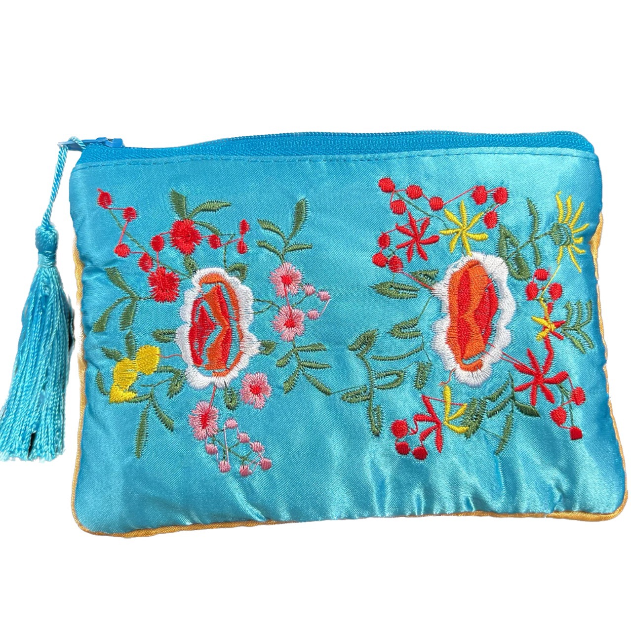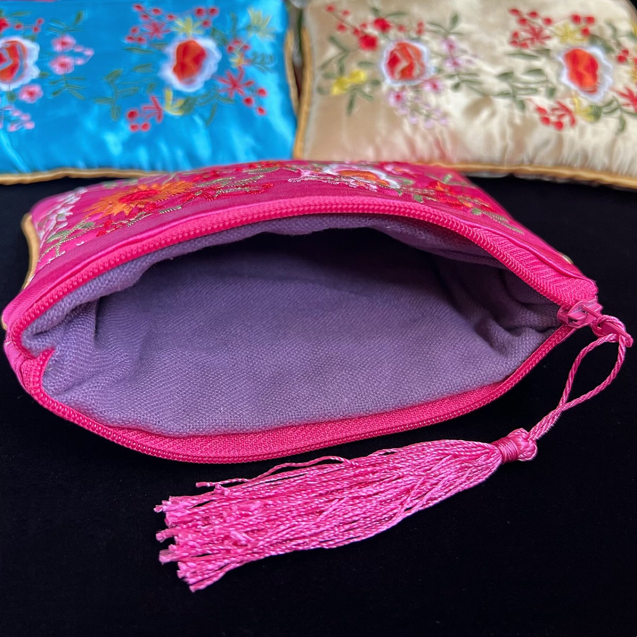 중국 자수 실크 동전 지갑 여성용 두꺼운 지퍼 보석 가방 보관 가방 중국 스타일 해외 선물스토어 가기