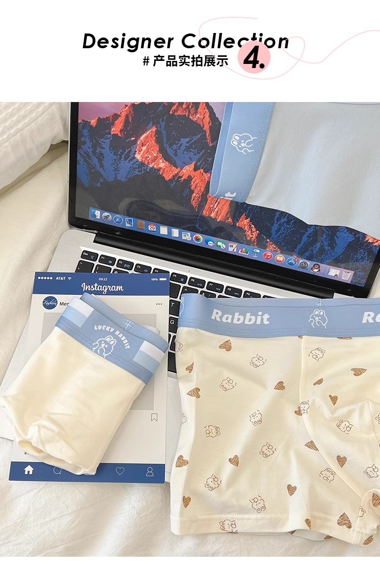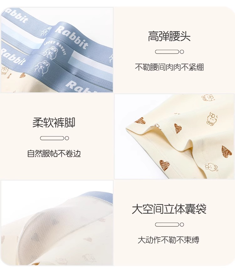 莫代尔男士内裤兔子款柔软透气舒适亲肤青年男士平角裤四角裤跨境