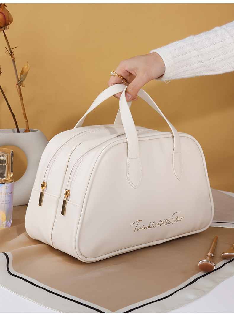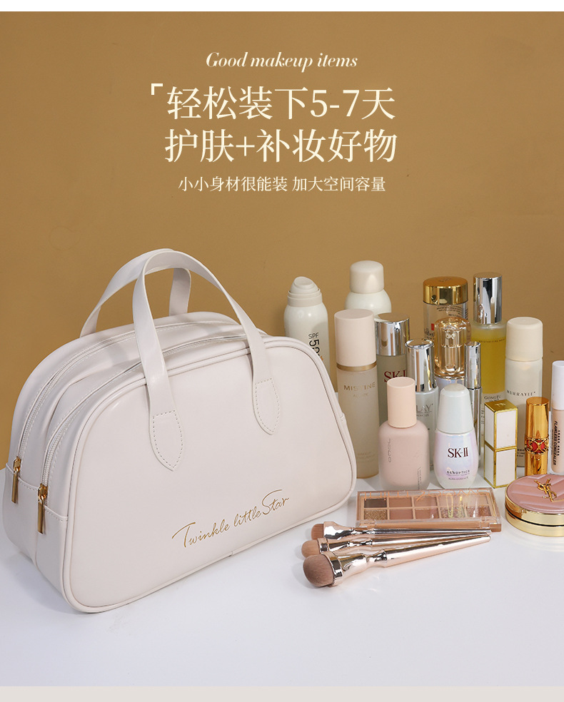 새로운 더블 레이어 휴대용 화장품 가방 보관 가방 패션 PU 스킨 케어 제품 보관 가방 휴대용 고가의 세면 도구 가방