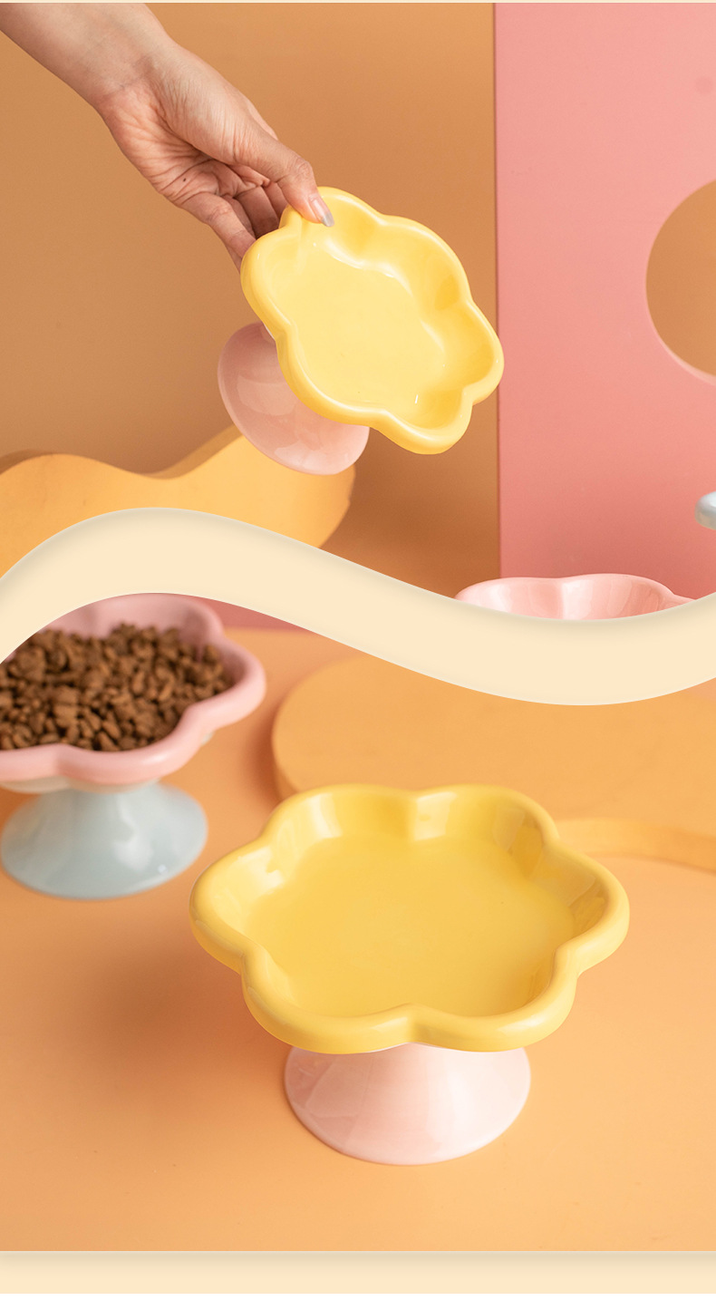 크리에이 티브 꽃 세라믹 고양이 그릇 만화 고양이 그릇 노크 방지 애완 동물 고양이 음식 분지 물 손목 음식 접시 통조림 고양이 접시