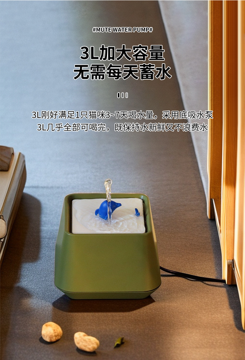 새로운 고양이 물통, 조용하고 물에 젖지 않는 고양이 물그릇, 자동 순환 필터링, 대형 애완동물 물통