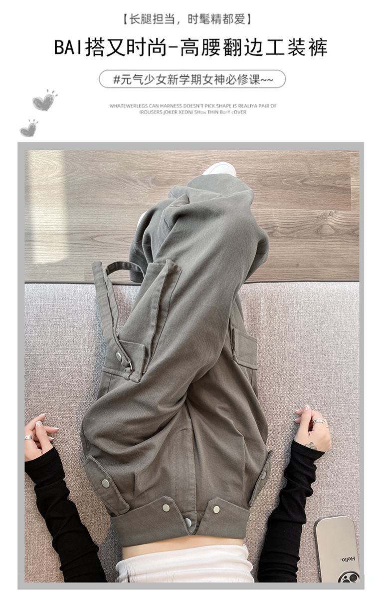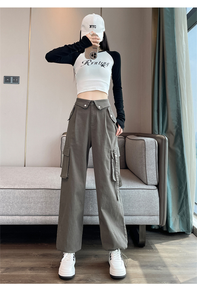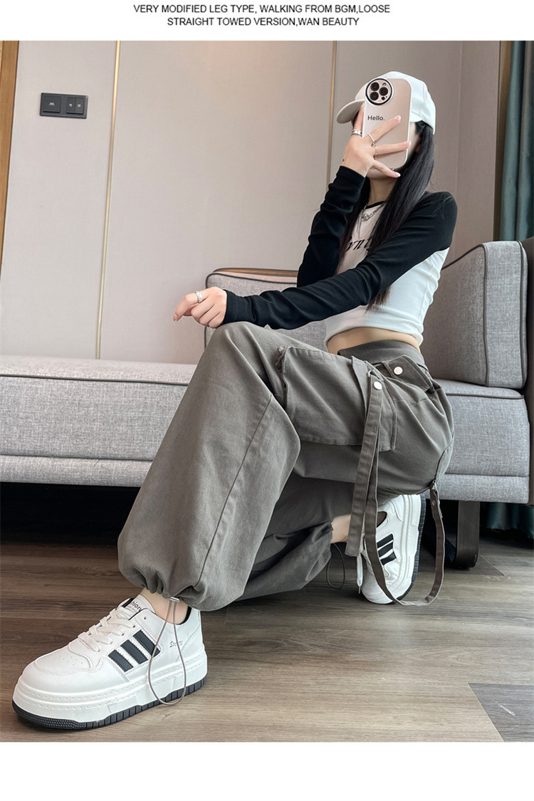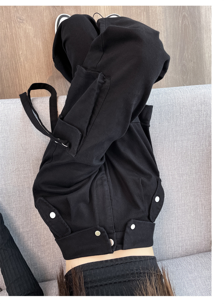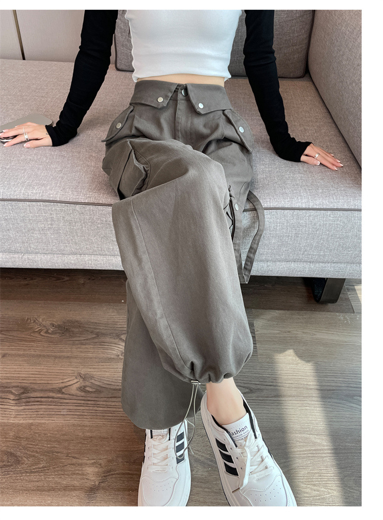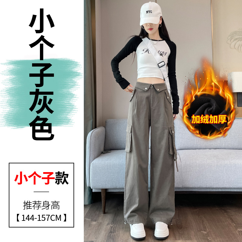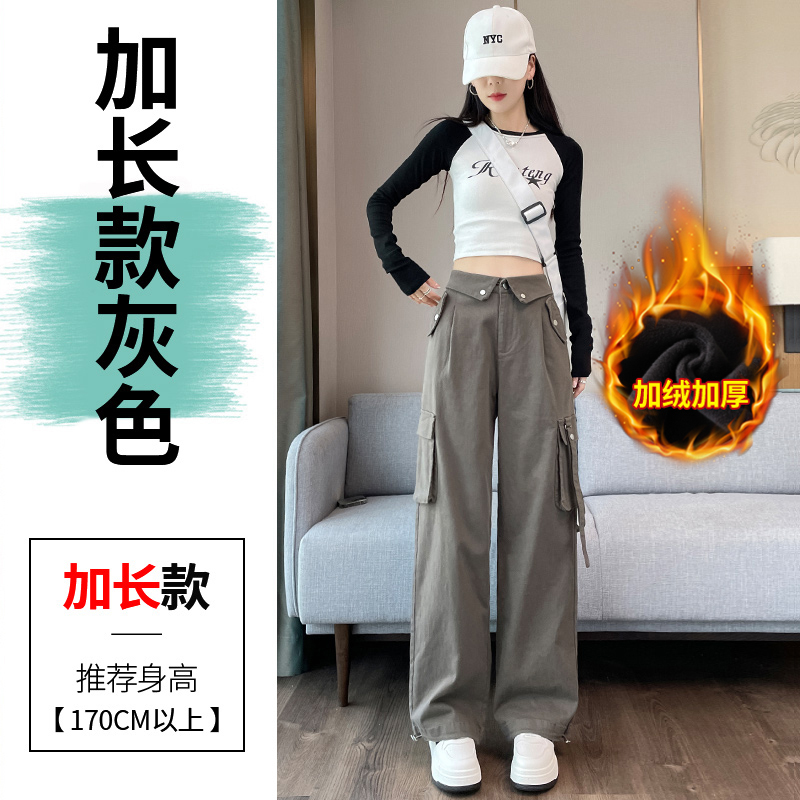 그레이 스트리트 오버올 여성 가을, 겨울 플러스 벨벳 2024 새로운 멋진 스타일 정장 유럽 캐주얼 스포츠 바지