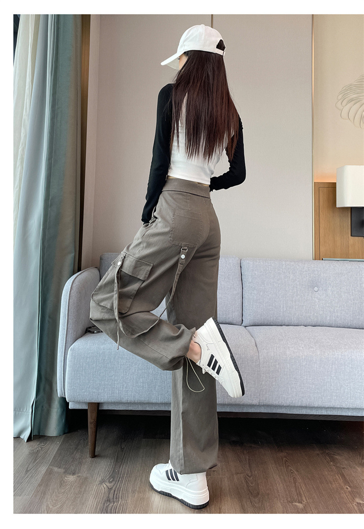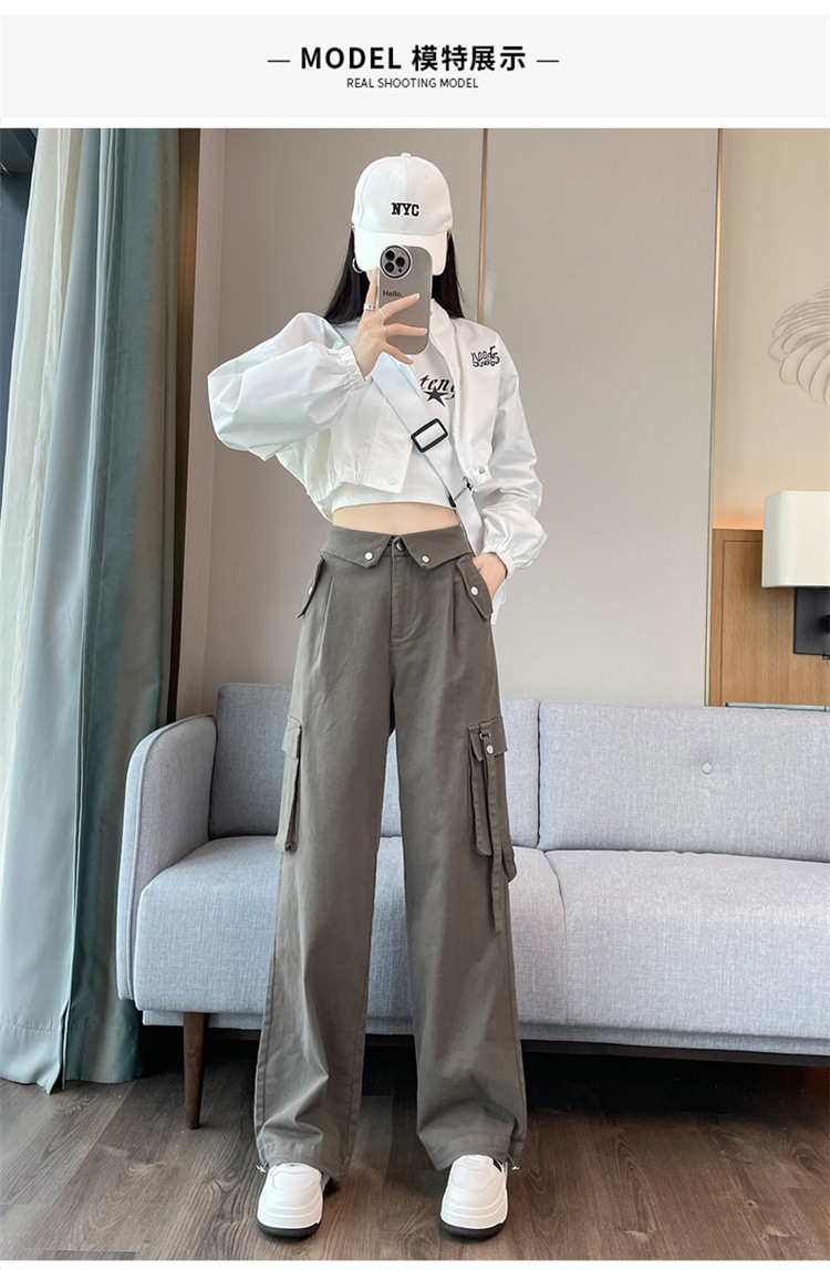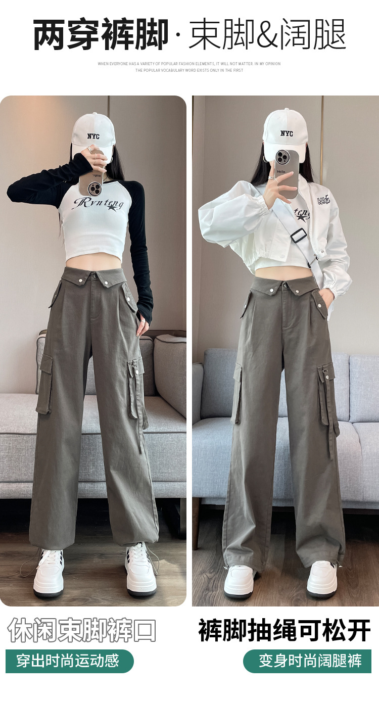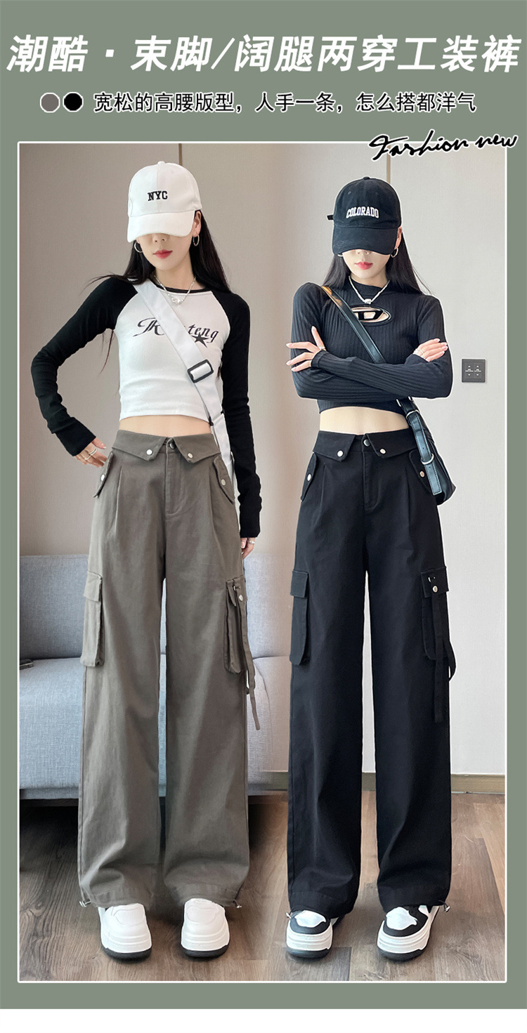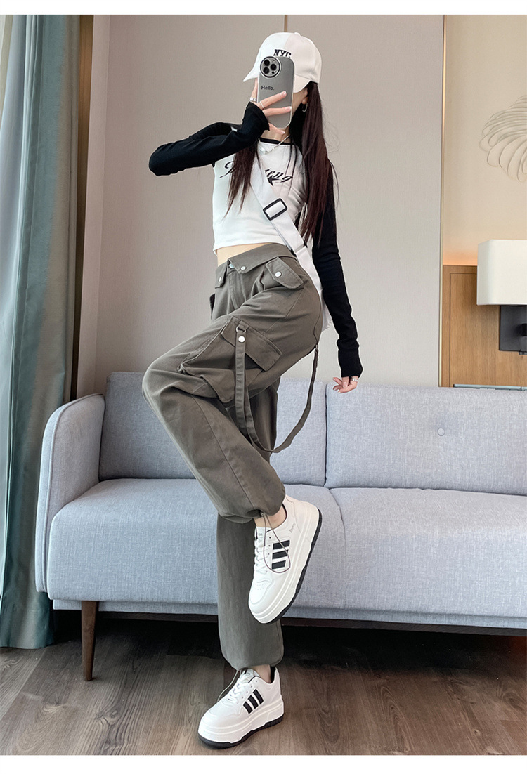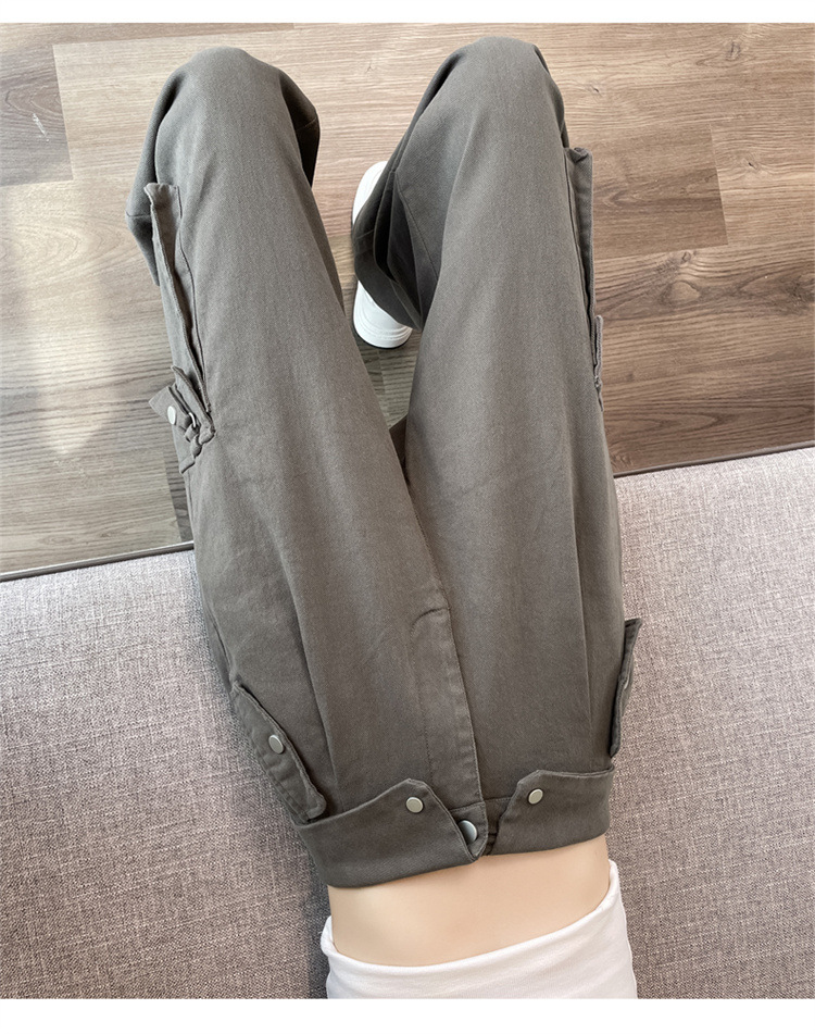 그레이 스트리트 오버올 여성 가을, 겨울 플러스 벨벳 2024 새로운 멋진 스타일 정장 유럽 캐주얼 스포츠 바지