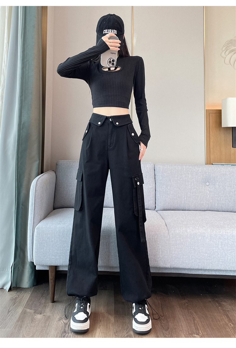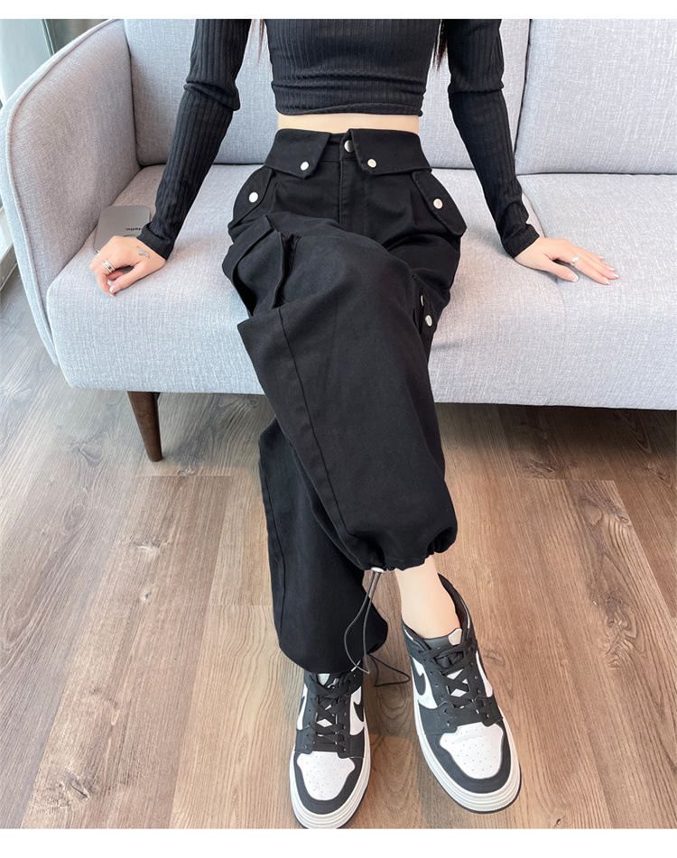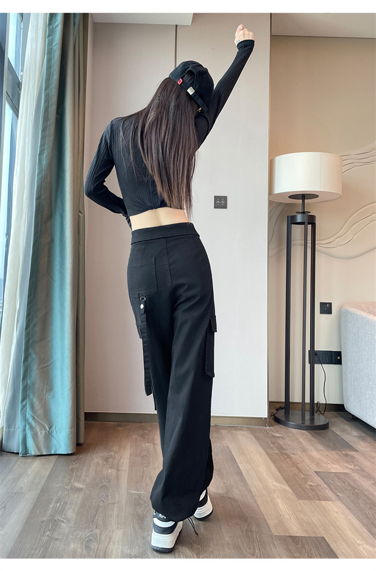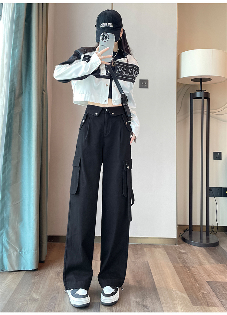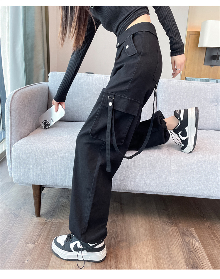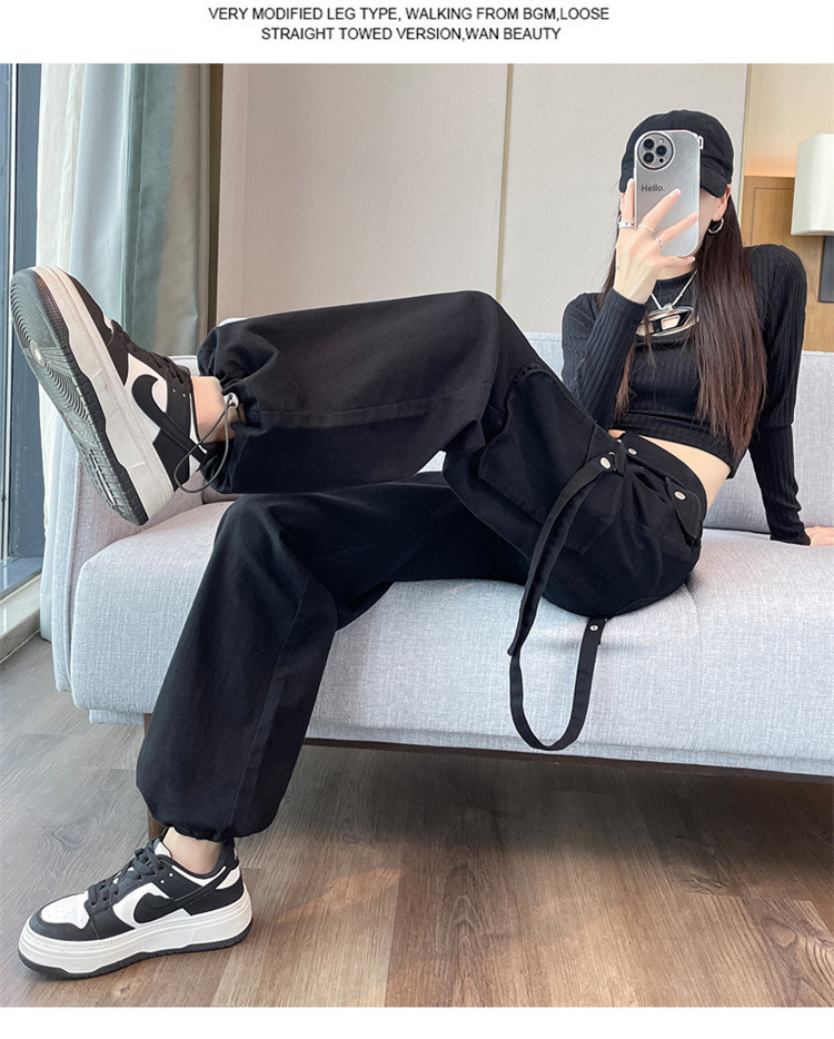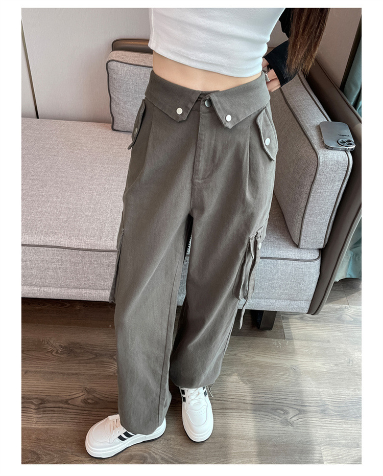 그레이 스트리트 오버올 여성 가을, 겨울 플러스 벨벳 2024 새로운 멋진 스타일 정장 유럽 캐주얼 스포츠 바지