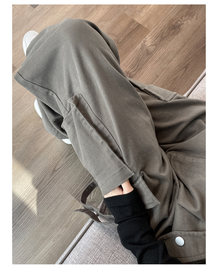 그레이 스트리트 오버올 여성 가을, 겨울 플러스 벨벳 2024 새로운 멋진 스타일 정장 유럽 캐주얼 스포츠 바지스토어 가기